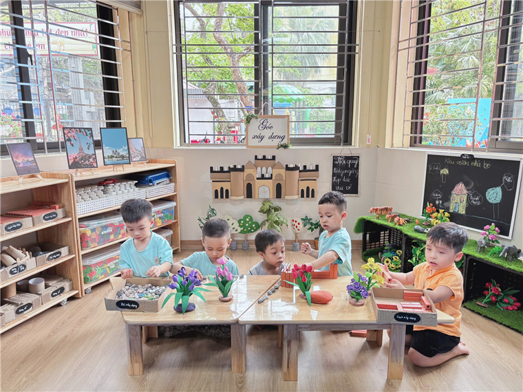 Hình ảnh các con hoạt động ở góc xây dựng