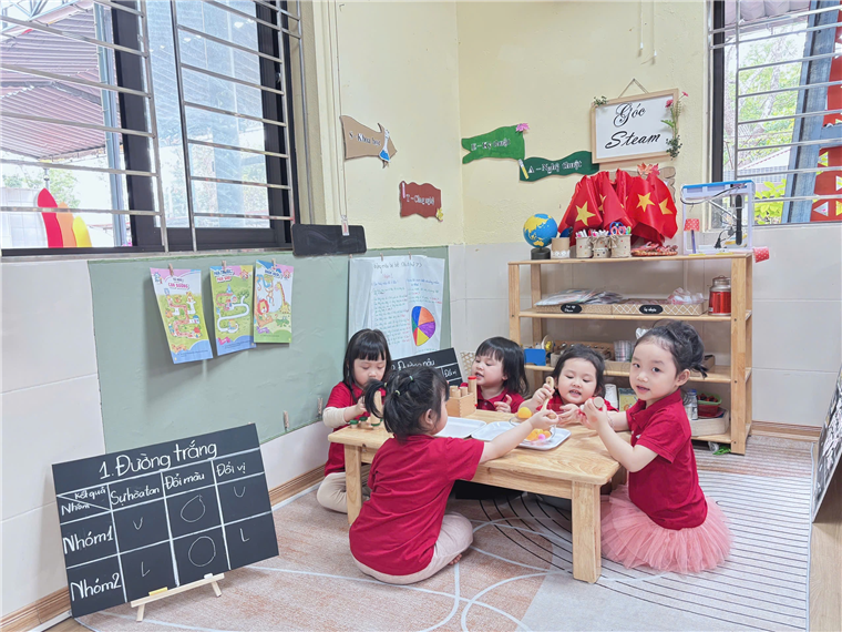 Hình ảnh các con hoạt động ở góc STEAM