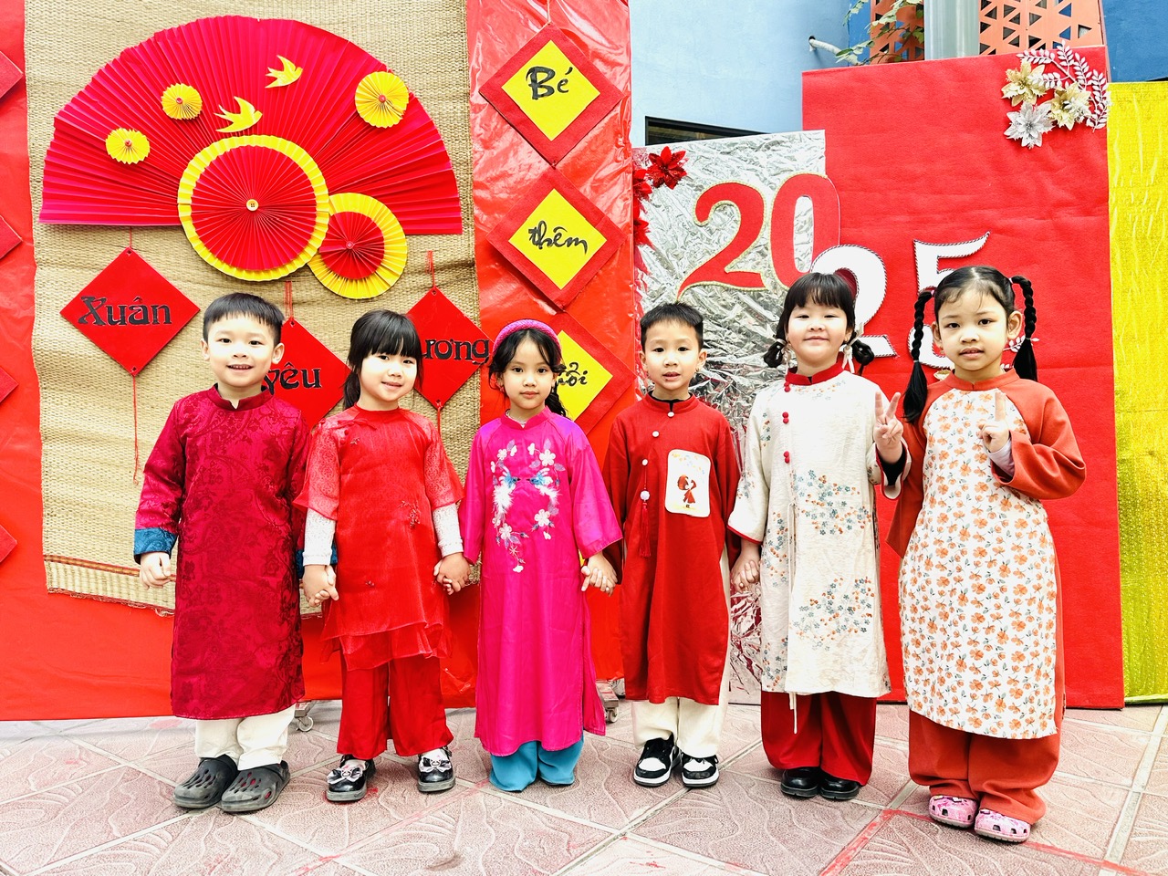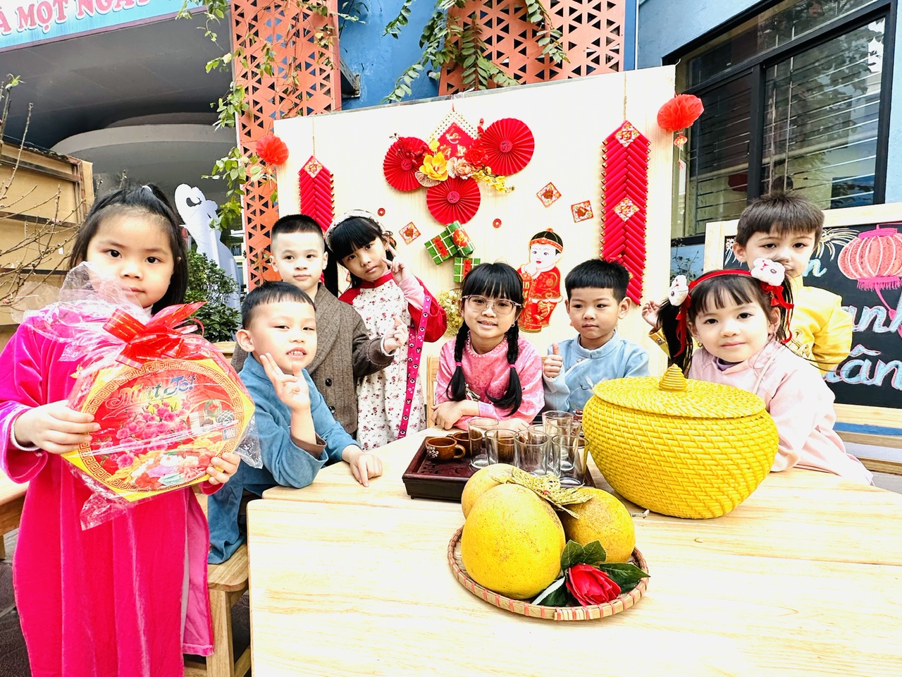 Lớp mẫu giáo lớn A4 rường mầm non Tuổi Hoa tổ chức chợ Xuân Ất Tỵ 2025 trong không khí rực rỡ sắc Xuân
