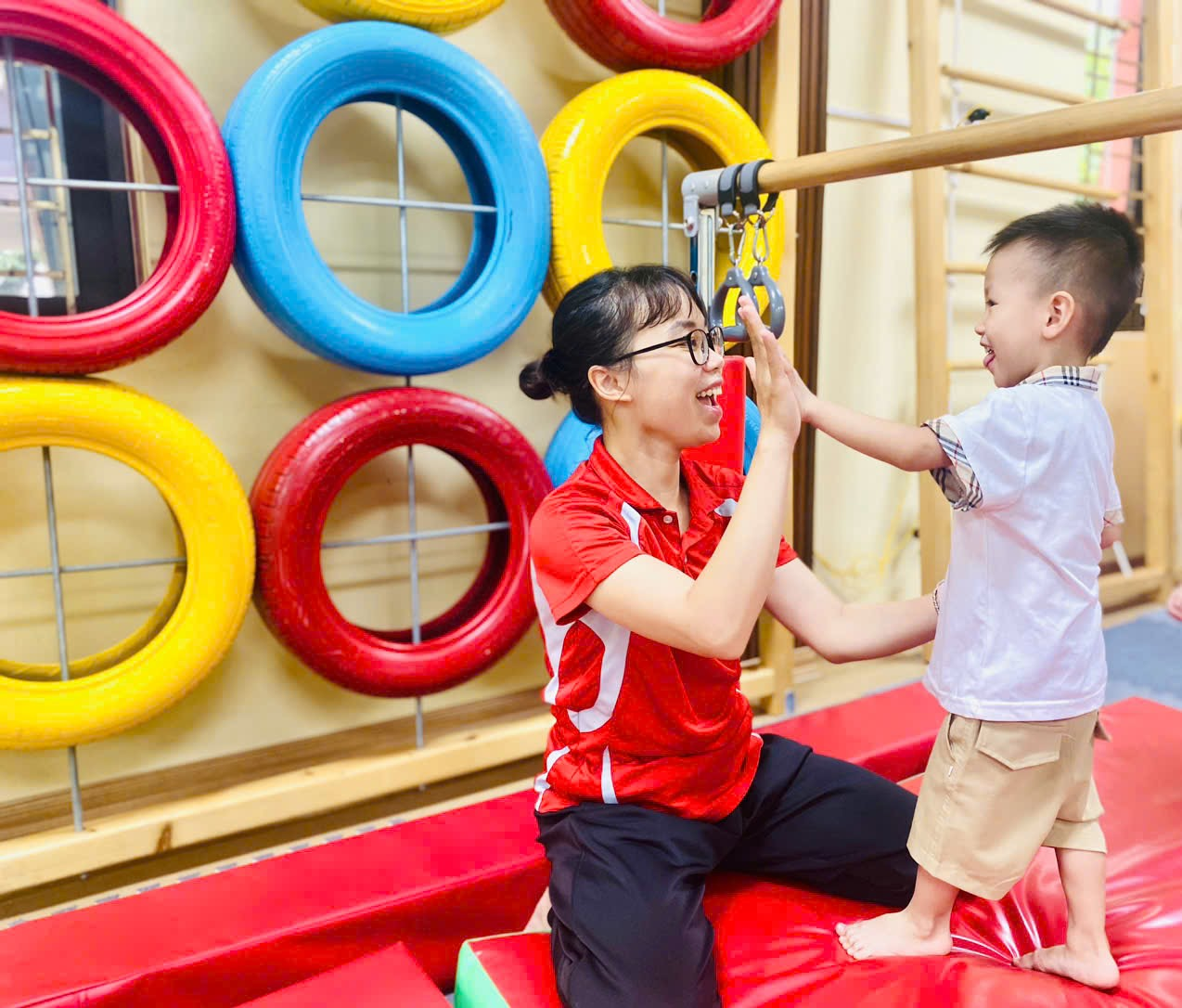 🌍 Đặc biệt, xuyên suốt buổi học các con được các thầy cô thuộc trung tâm Gymkid hướng dẫn hoàn toàn bằng  tiếng Anh, giúp trẻ tiếp cận tiếng Anh - ngôn ngữ mới một cách tự nhiên thông qua trò chơi, bài hát và tương tác vận động. Vừa học, vừa chơi, vừa phát triển cả thể chất lẫn ngôn ngữ – đó chính là giá trị mà Gymkid mang lại.