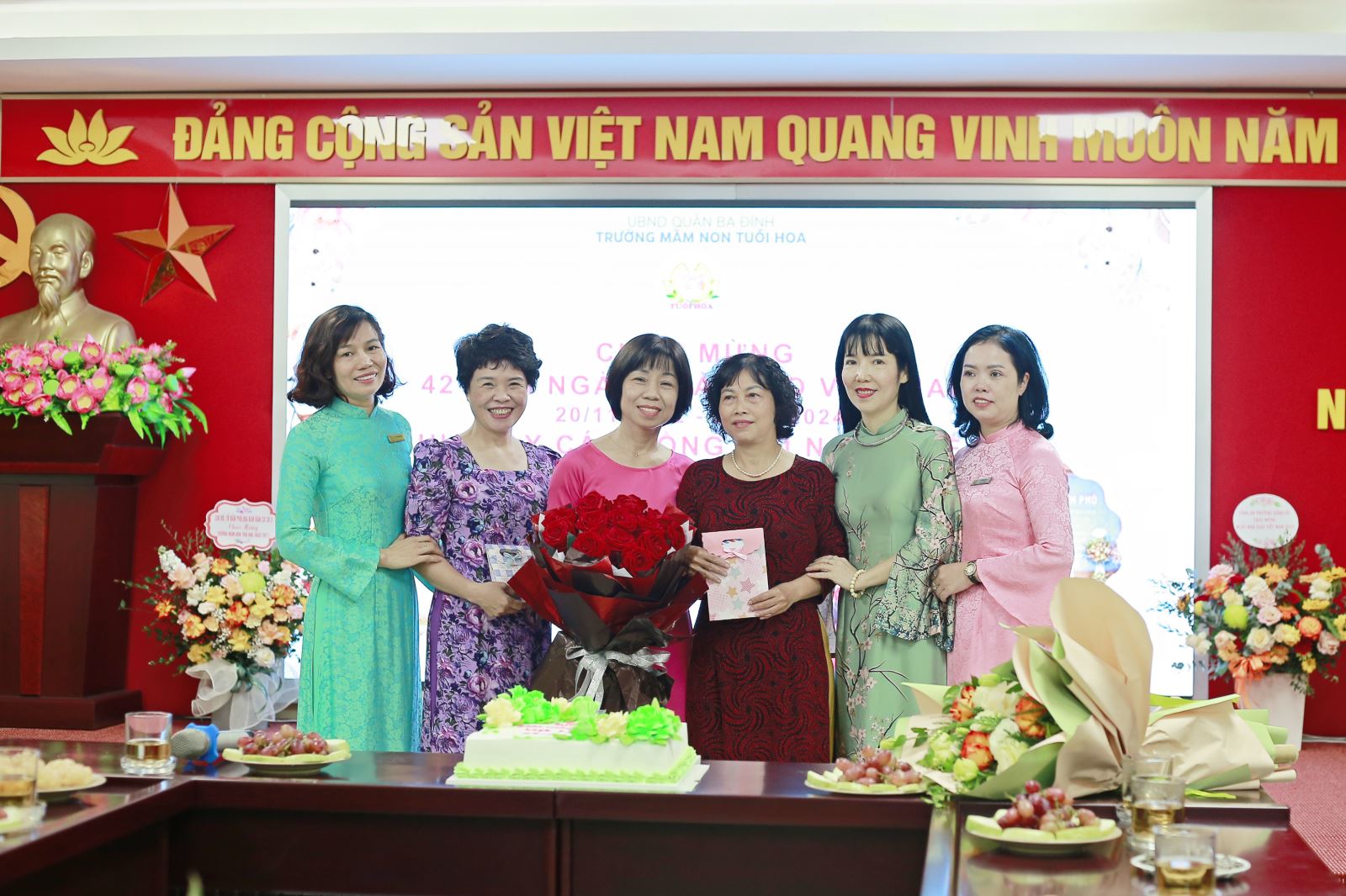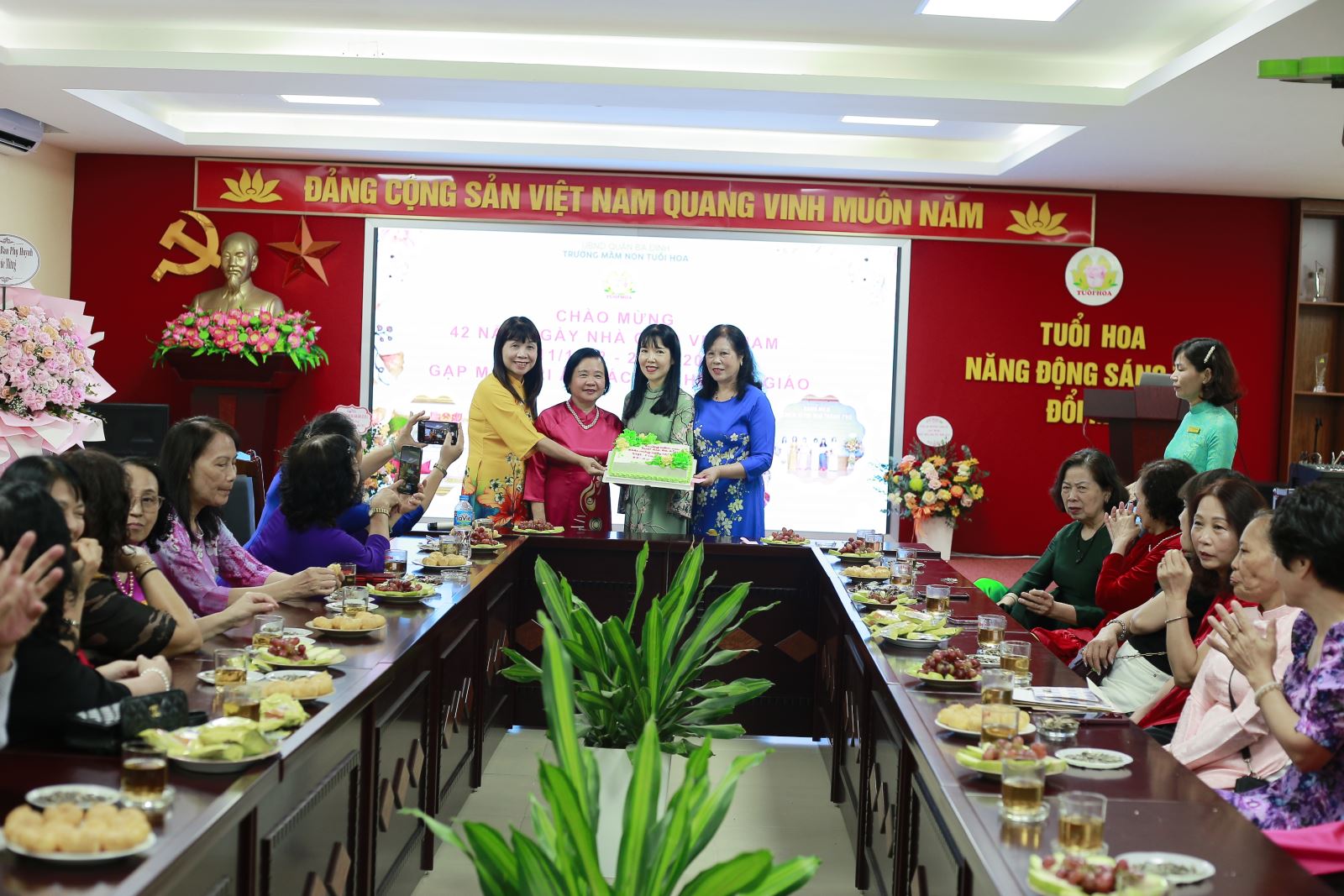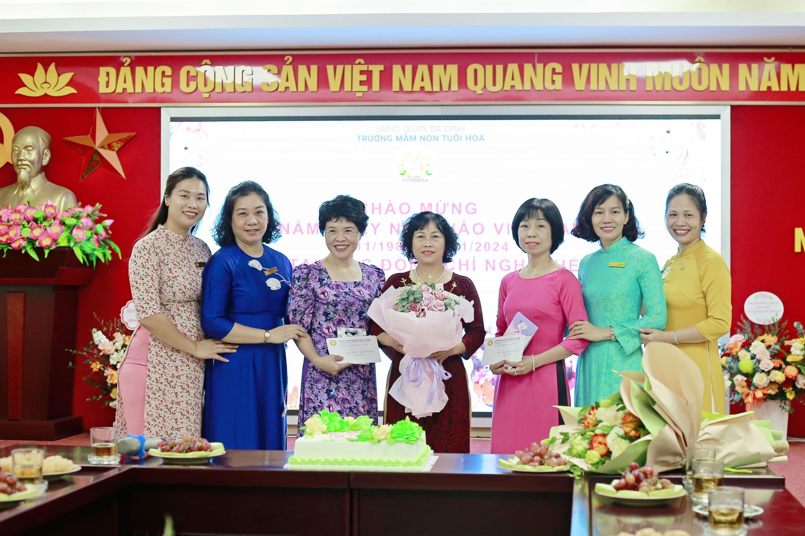 Chào mừng kỷ niệm 42 năm Ngày Nhà giáo Việt Nam (20/11/1982 - 20/11/2024) trường mầm non Tuổi Hoa đã tổ chức buổi gặp mặt, tri ân các thế hệ nhà giáo nguyên là cán bộ, giáo viên và nhân viên nhà trường và khen thưởng CBGVNV có thành tích trong năm học 2023 - 2024.