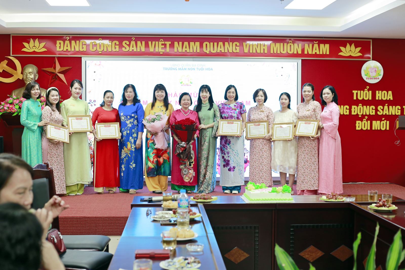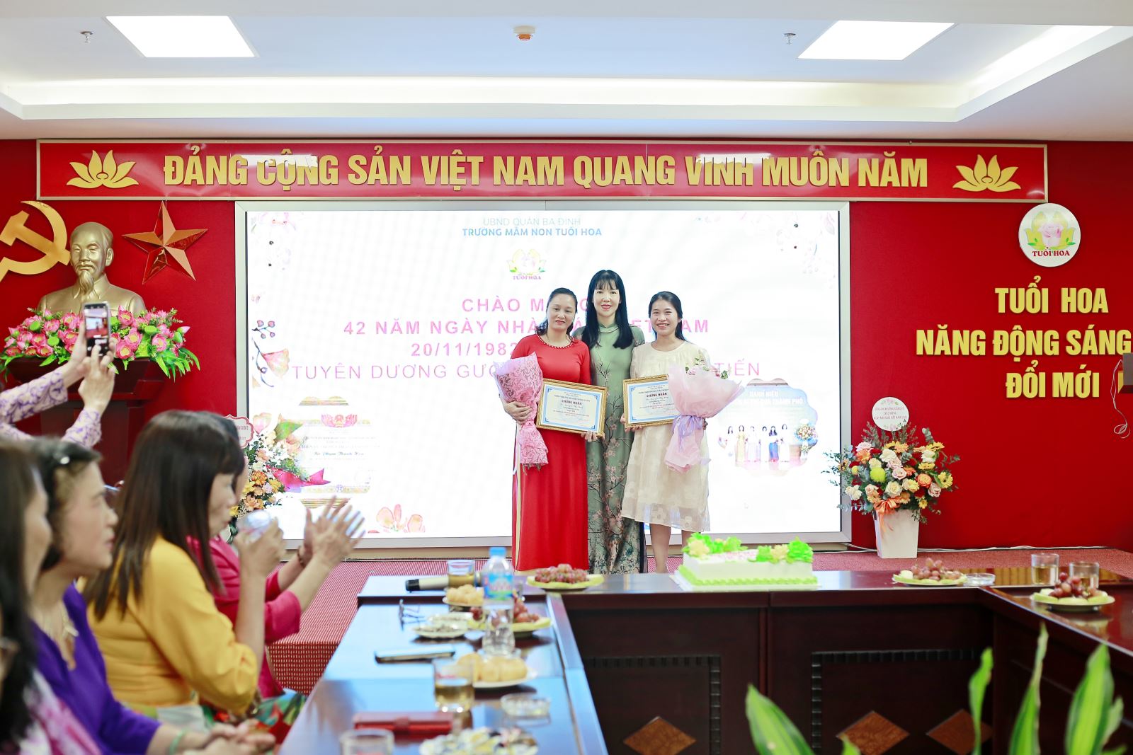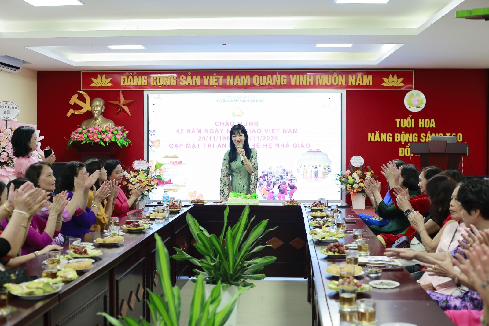 Chào mừng kỷ niệm 42 năm Ngày Nhà giáo Việt Nam (20/11/1982 - 20/11/2024) trường mầm non Tuổi Hoa đã tổ chức buổi gặp mặt, tri ân các thế hệ nhà giáo nguyên là cán bộ, giáo viên và nhân viên nhà trường và khen thưởng CBGVNV có thành tích trong năm học 2023 - 2024.
