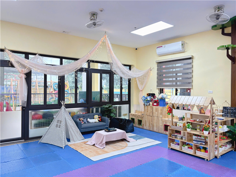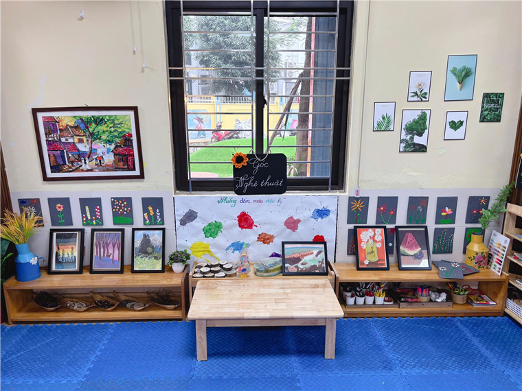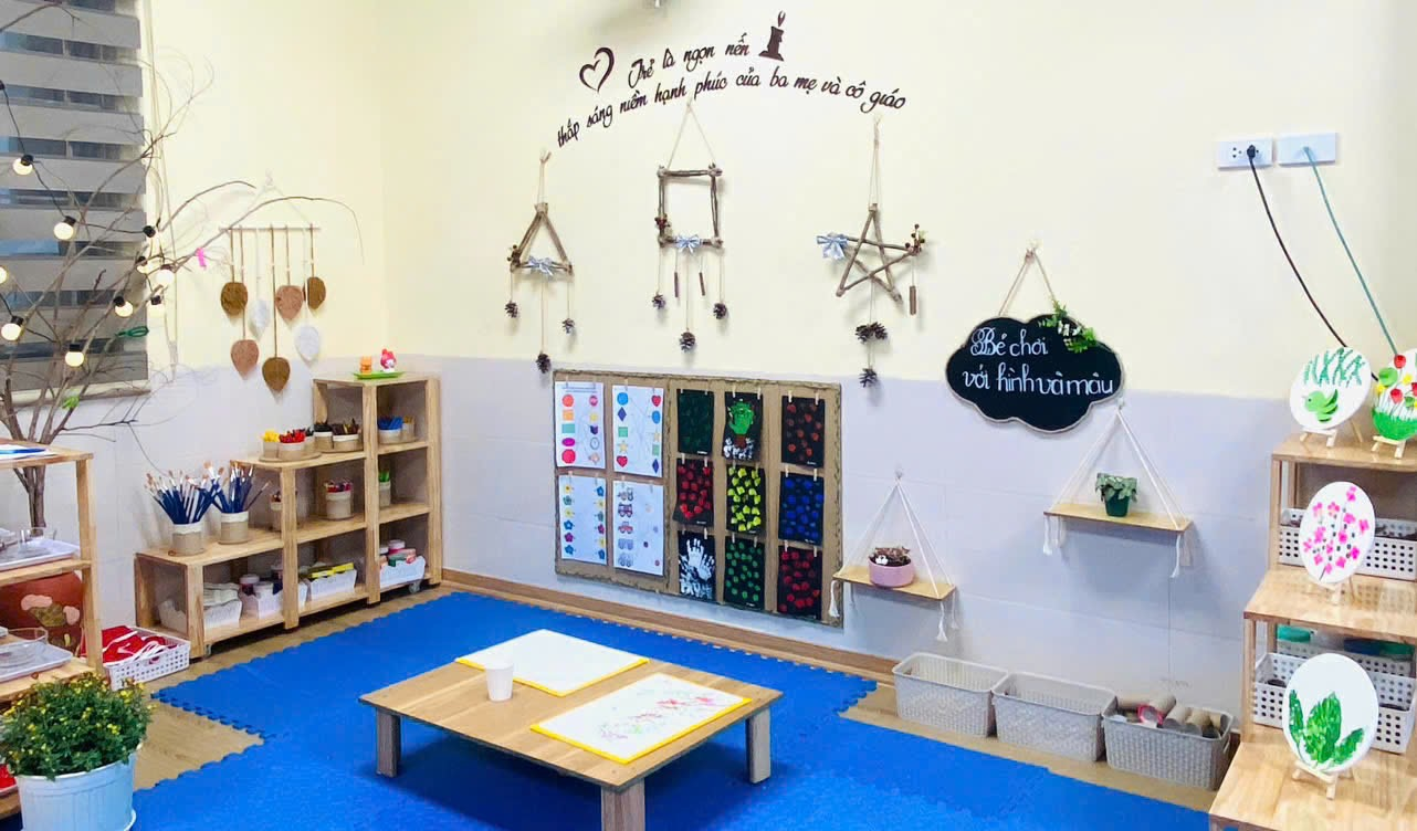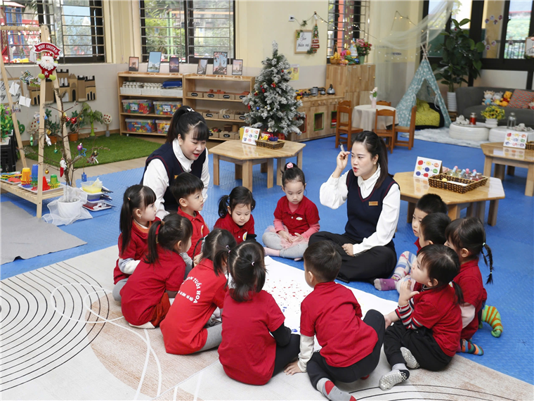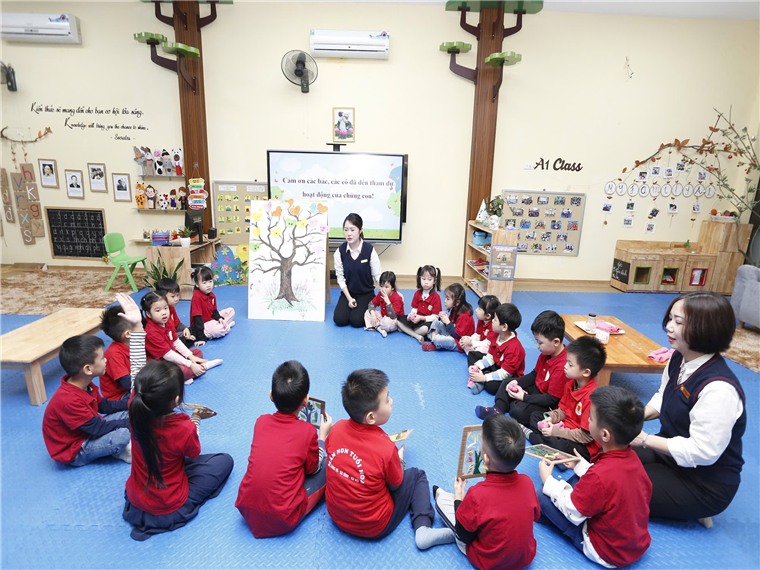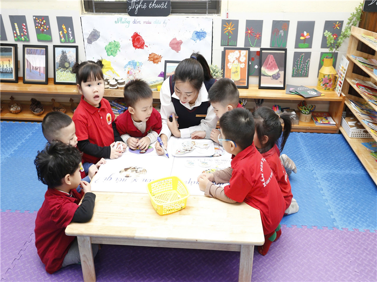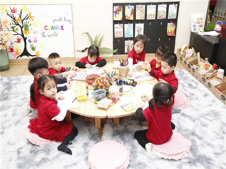 Với các hoạt động học, tùy từng lứa tuổi, tại các lớp diễn ra các hoạt động học phù hợp. Ví dụ, với lớp nhà trẻ (24-36 tháng) có hoạt động dạy trẻ nhận biết màu sắc; hướng dẫn trẻ chơi với hình, màu sắc và tạo sản phẩm từ các nguyên vật liệu rời. Còn đối với lớp mẫu giáo bé (3-4 tuổi), giáo viên hướng dẫn trẻ biết nói “lời cảm ơn”.