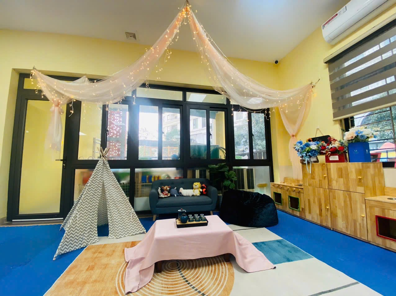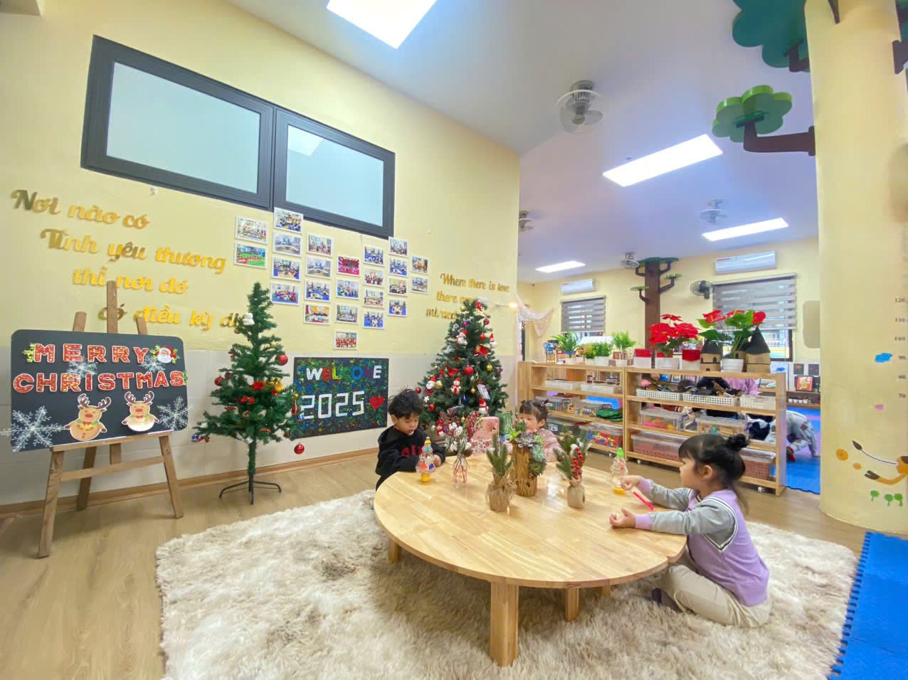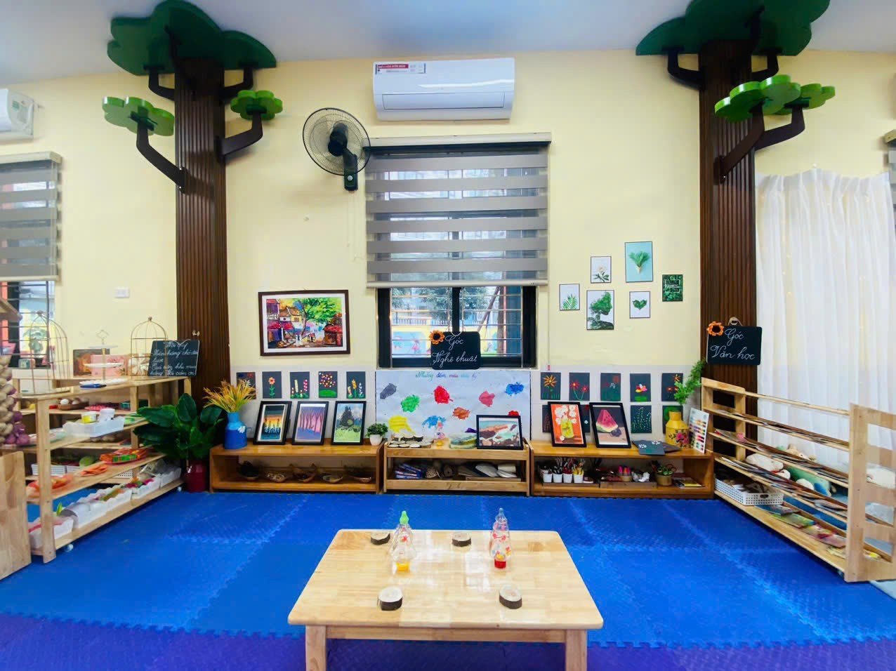 Với các hoạt động học, tùy từng lứa tuổi, tại các lớp diễn ra các hoạt động học phù hợp. Ví dụ, với lớp nhà trẻ (24-36 tháng) có hoạt động dạy trẻ nhận biết màu sắc; hướng dẫn trẻ chơi với hình, màu sắc và tạo sản phẩm từ các nguyên vật liệu rời. Còn đối với lớp mẫu giáo bé (3-4 tuổi), giáo viên hướng dẫn trẻ biết nói “lời cảm ơn”.