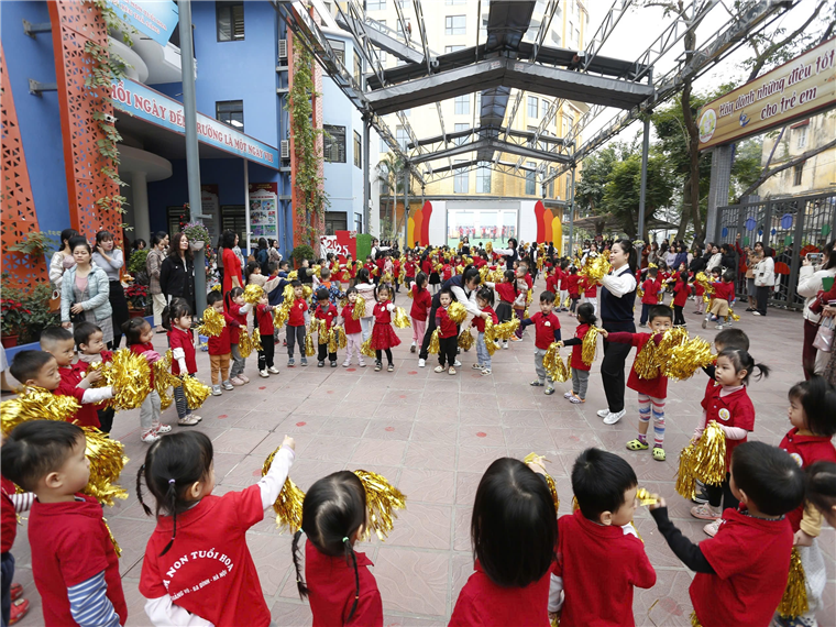 Trong khi đó, với lớp mẫu giáo lớn (5-6 tuổi), trẻ được học cách thể hiện hành vi văn minh, thanh lịch ở nơi công cộng; học cách quan tâm, chia sẻ với các bạn có hoàn cảnh khó khăn...