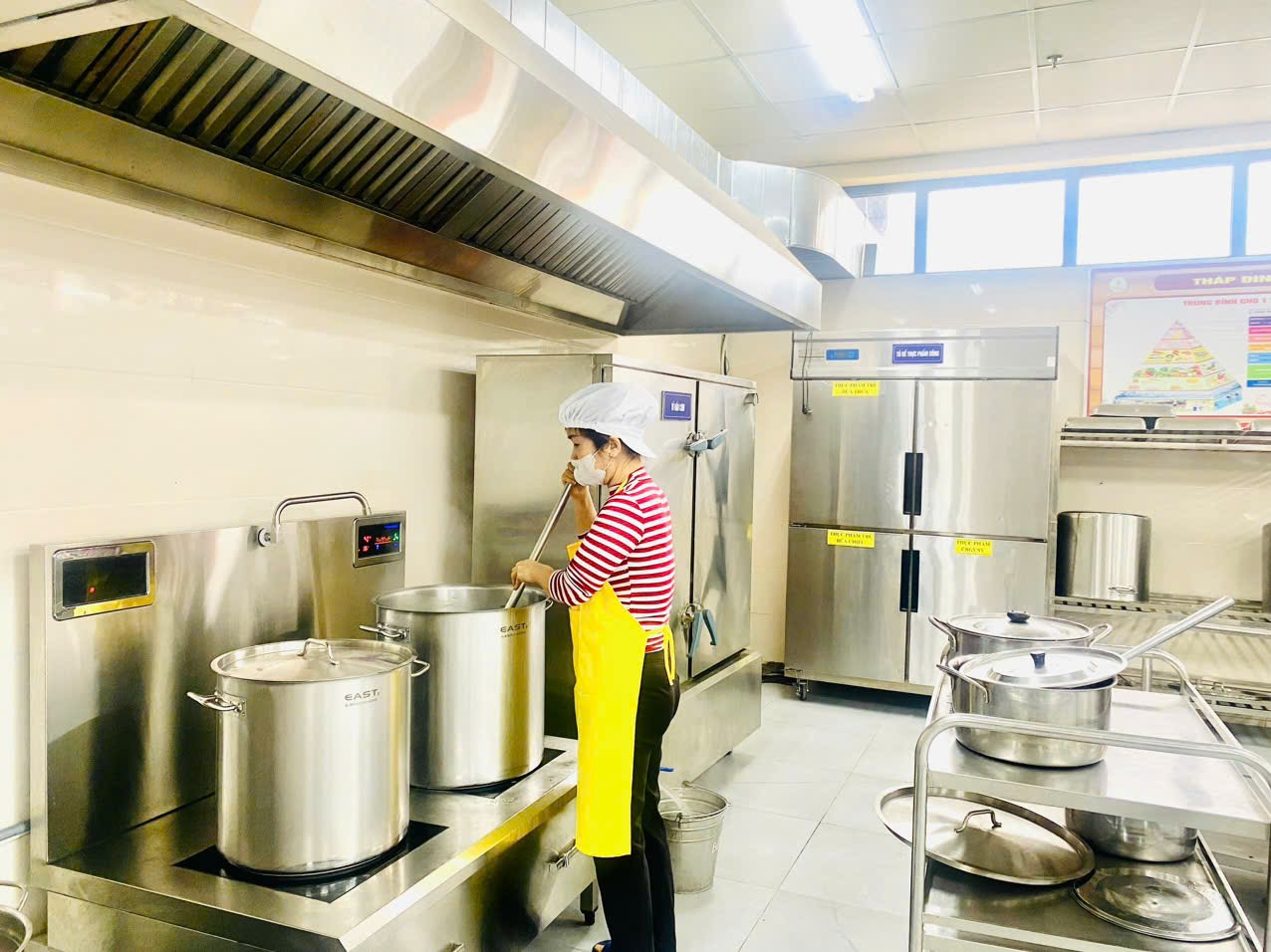 Hình ảnh: Nhân viên nuôi dưỡng đang nấu ăn cho CBGV_NV