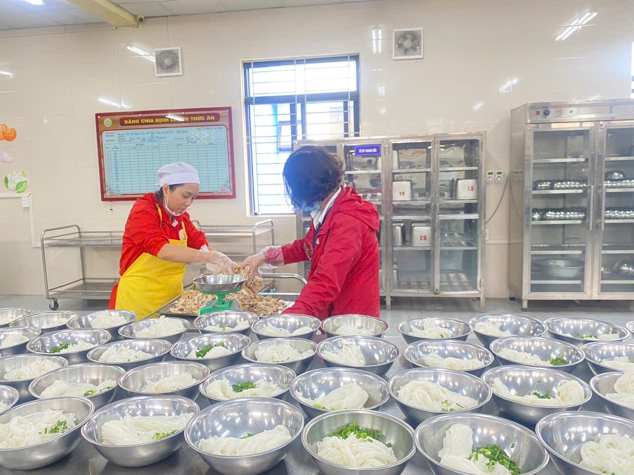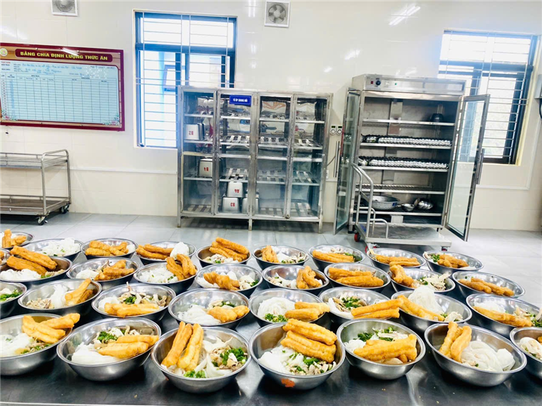 Qua kiểm tra, đánh giá: Khu vực bếp ăn luôn đảm bảo an toàn, thoáng mát, đảm bảo các điều kiện tối ưu nhất cho công tác nuôi dưỡng. Bếp ăn đã đảm bảo theo nguyên tắc 1 chiều, thực phẩm tươi ngon, sạch sẽ, cân đúng số lượng, báo đúng số xuất ăn, các loại thực phẩm theo đúng thực đơn, đảm bảo vệ sinh an toàn thực phẩm các thiết bị dụng cụ đầy đủ, công tác vệ sinh môi trường, vệ sinh trong chế biến, bảo quản thực phẩm, lưu mẫu thức ăn ít nhất 24h theo quy định.