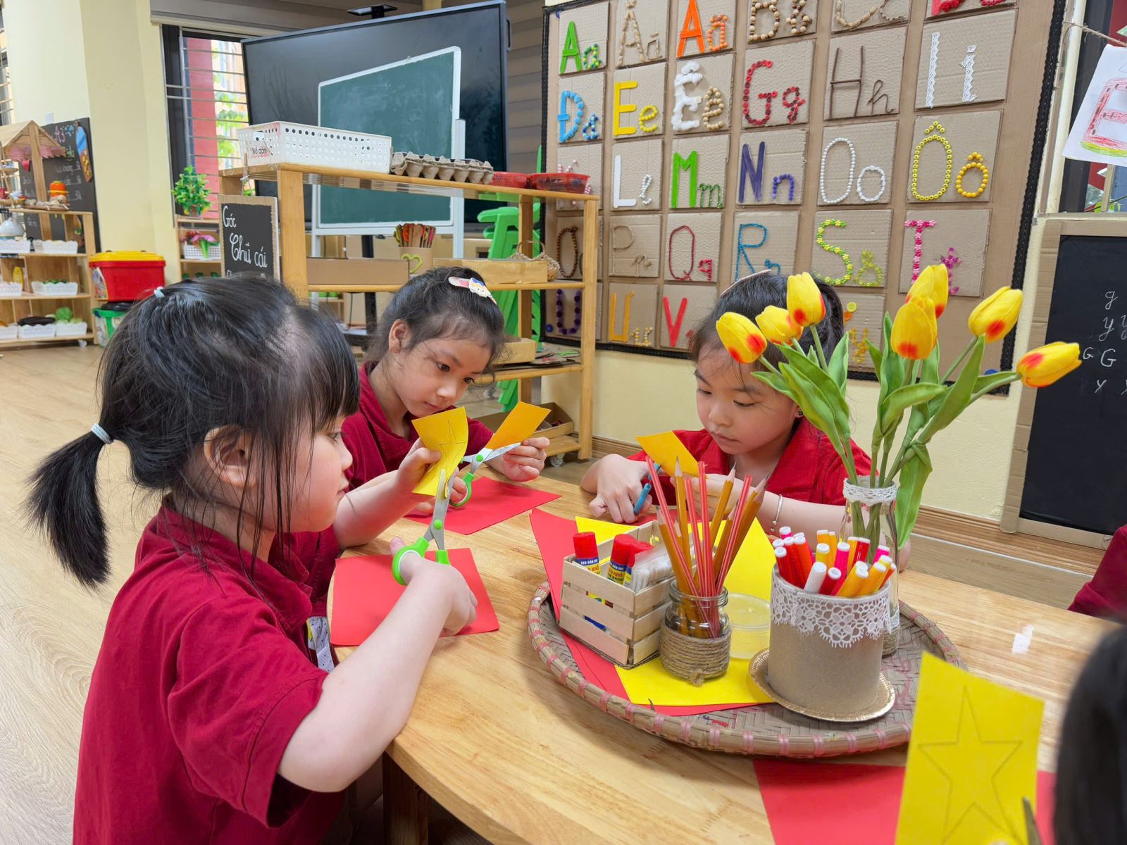 Các con say sưa trong hoạt động làm lá Quốc kỳ