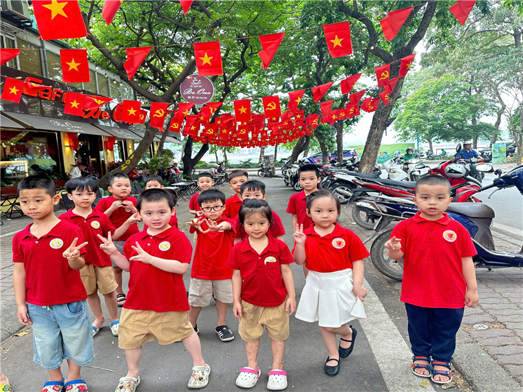 Không chỉ dừng lại ở các hoạt động trong lớp, các con còn tích cực tham gia hoạt động trải nghiệm như đi dạo đường phố xung quanh trường xem có gì khác so với những ngày thường