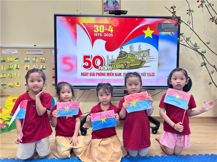 Hòa chung không khí cả nước kỷ niệm 50 năm ngày thống nhất đất nước (30/4/1975 - 30/4/2025), các cô giáo lớp A2 đã tổ chức cho các bạn nhỏ tham gia những hoạt động thiết thực và ý nghĩa nhằm bày tỏ lòng biết ơn đối với thế hệ cha ông đi trước, đồng thời thể hiện tình yêu quê hương, đất nước.