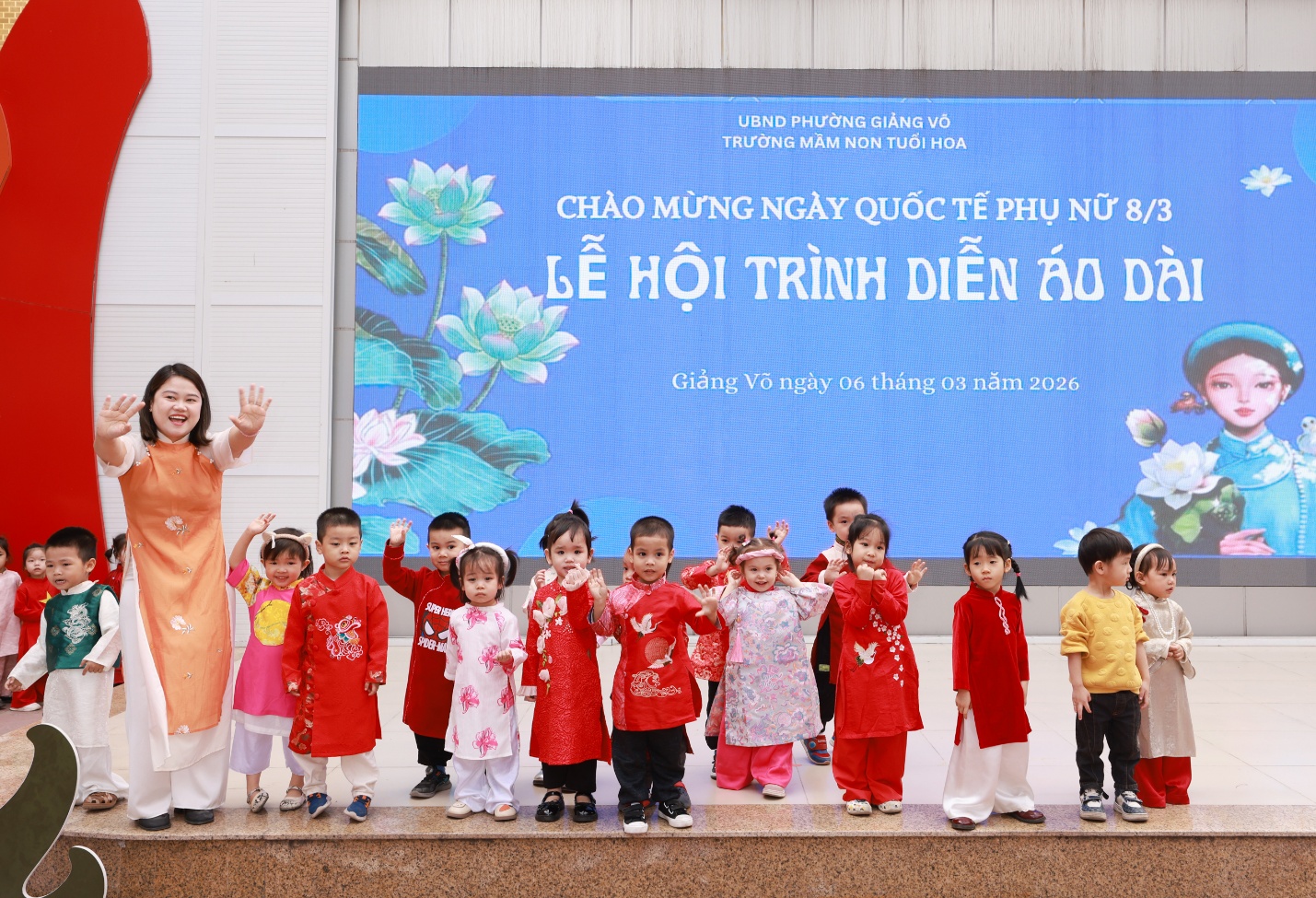 Hòa chung không khí vui tươi chào mừng ngày 8/3, các bé lớp Mẫu giáo bé C1 – Trường Mầm non Tuổi Hoa đã tham gia hoạt động “Lễ hội áo dài” thật đáng yêu. Các bé diện những bộ áo dài nhiều màu sắc rực rỡ và tự tin trình diễn trước cô và các bạn. Những bước đi ngộ nghĩnh của các con đã mang lại nhiều tiếng cười và niềm vui. Qua hoạt động này, các bé được làm quen với trang phục truyền thống của dân tộc Việt Nam. Đồng thời giúp trẻ thêm mạnh dạn, tự tin khi tham gia các hoạt động tập thể. Đây cũng là dịp để các bé gửi những lời chúc yêu thương đến bà, mẹ và các cô giáo nhân ngày 8/3. Lễ hội đã để lại nhiều kỷ niệm vui và ý nghĩa cho các con. 🌷