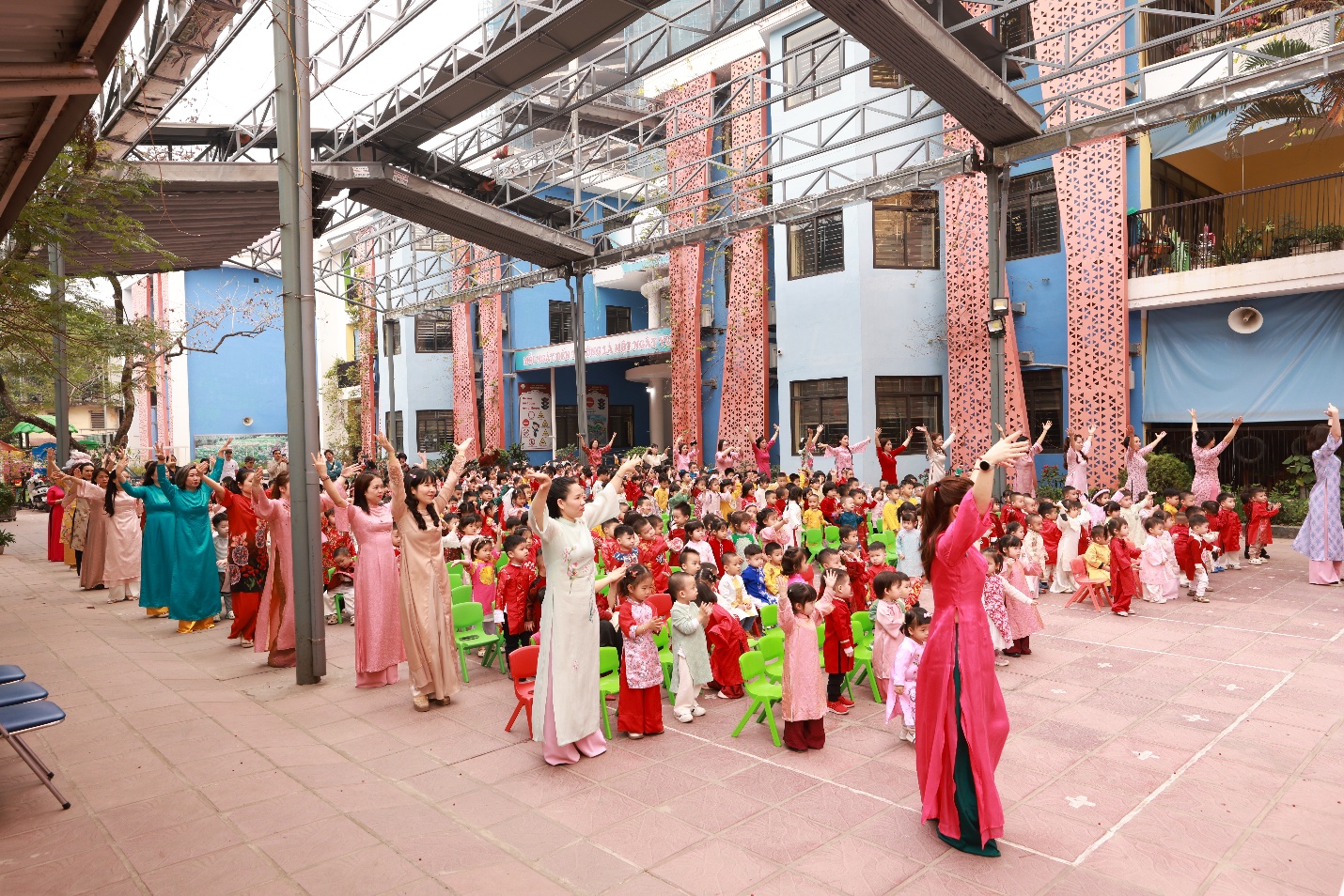Tập thể lớp C1 chụp ảnh cùng Ban Giám Hiệu trong lễ hộiCô và trò trường Tuổi Hoa cùng nhảy Flashmob sôi động