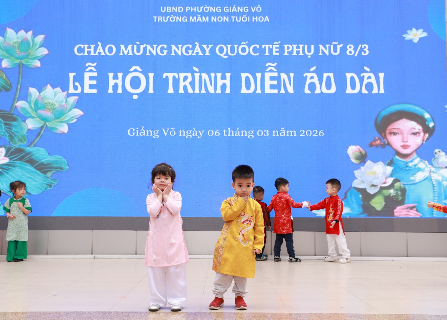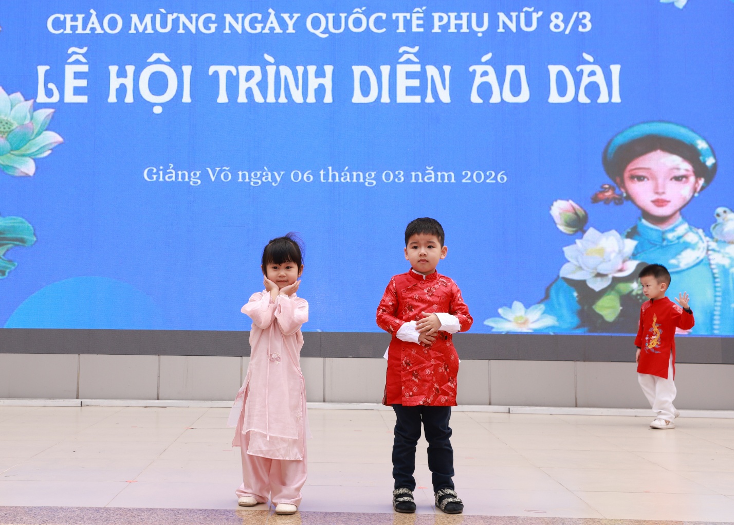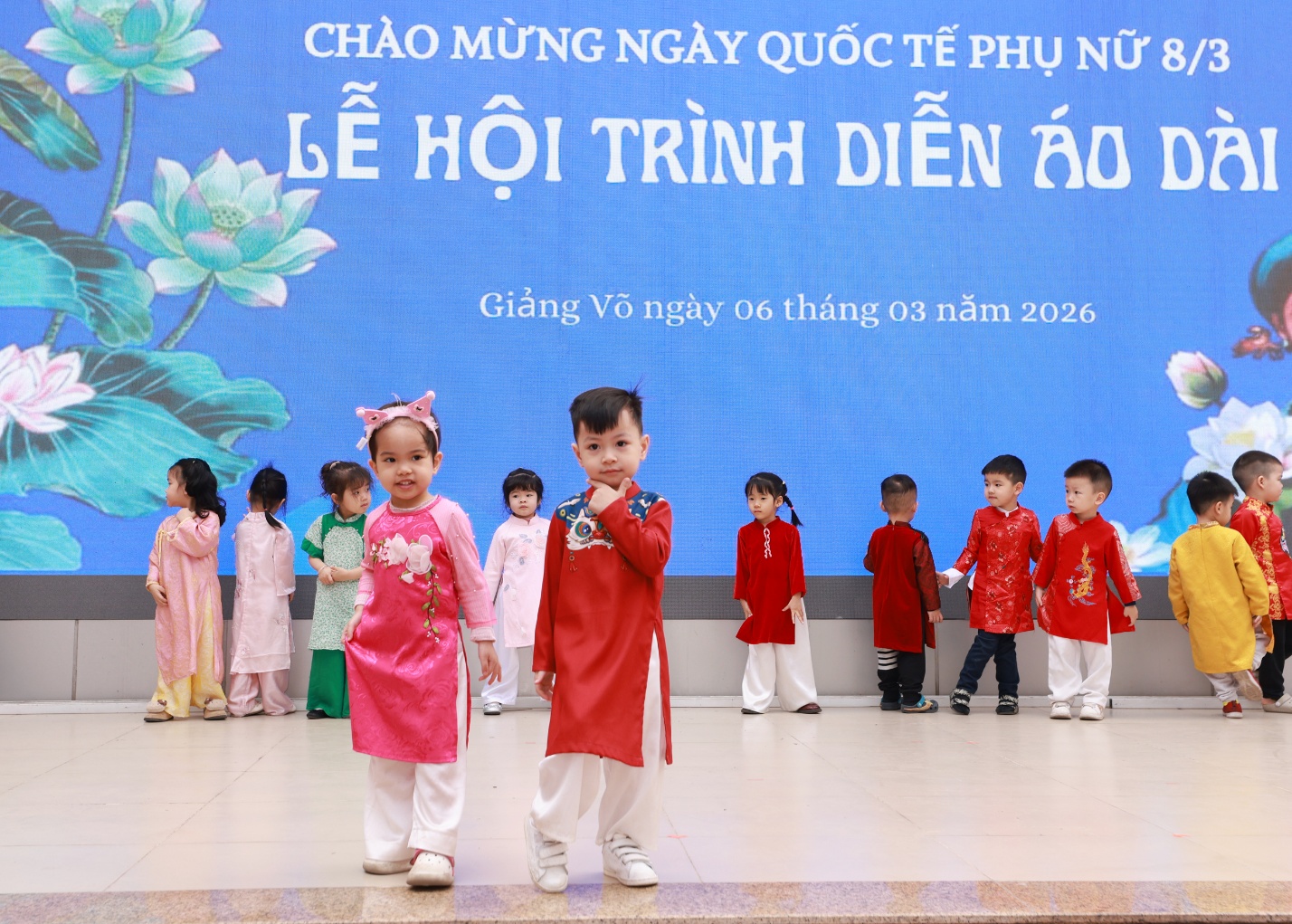 Màn trình diễn áo dài của các bé lớp C1Màn trình diễn áo dài của các bé lớp C1Các bé tự tin tạo dángCác bé lớp C1 tạo dáng trước ống kính rất ngộ nghĩnh