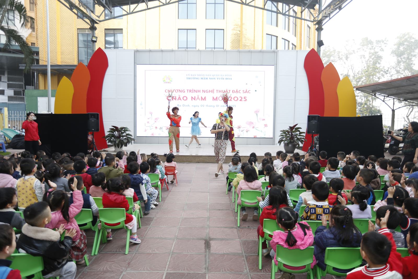 Sáng nay ngày 2/1/2025, các bé lớp MGN B2 rất hào hứng khi tham gia “Chương trình nghệ thuật đặc sắc chào năm mới 2025” do các nghệ sỹ nhà hát múa rối trung ương biểu diễn với các tiết mục đặc biệt, hấp dẫn. Trong niềm vui hân hoan của các con biểu lộ rõ nhất trên gương mặt là những cảm xúc có lúc thì trầm trồ, lúc thì bất ngờ và đôi khi ngạc nhiên của các con khi xem các tiết mục múa rối như: Đấu vật, nàng Bạch Tuyết và bảy chú lùn, múa công, điệu múa làng quê v....v... Bên cạnh đó các con còn được giao lưu , biểu diễn và chụp chung được những bức ảnh lưu niệm thật đẹp với các nghệ sỹ.