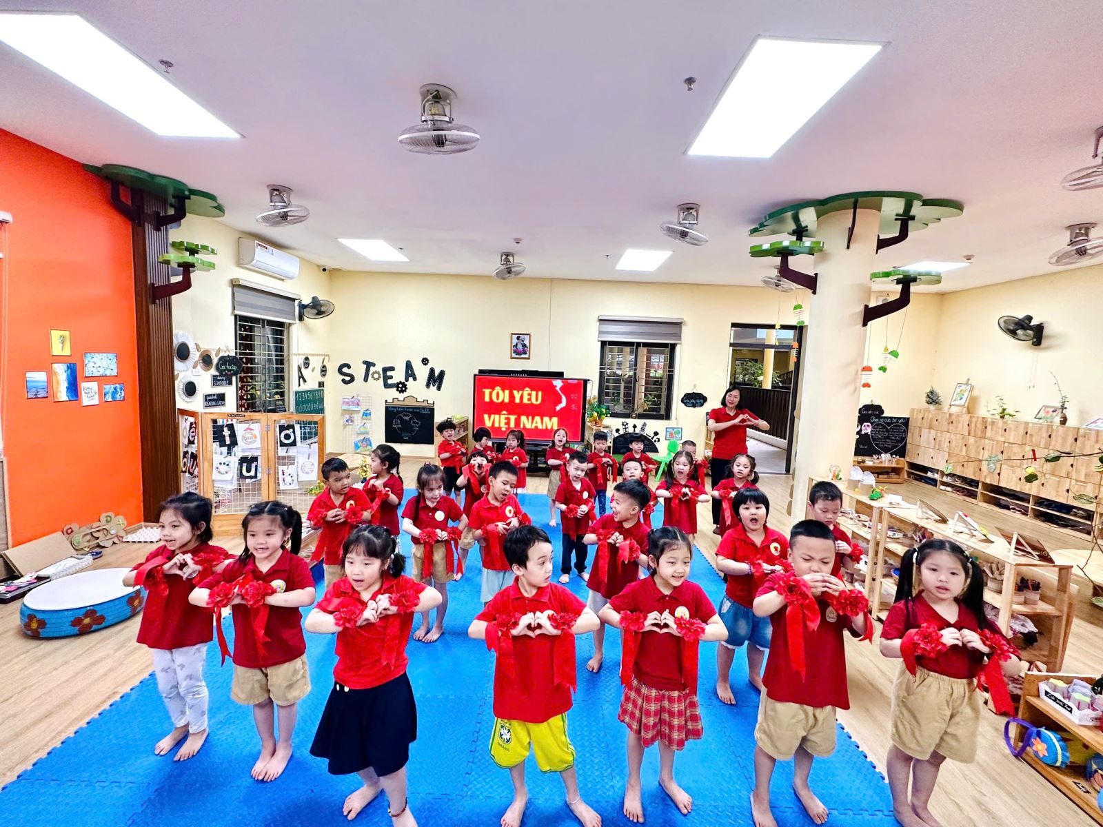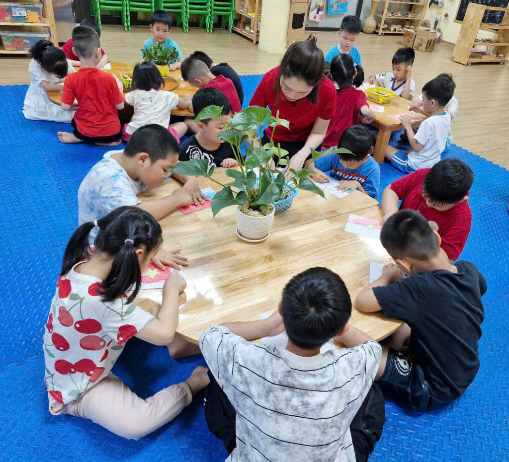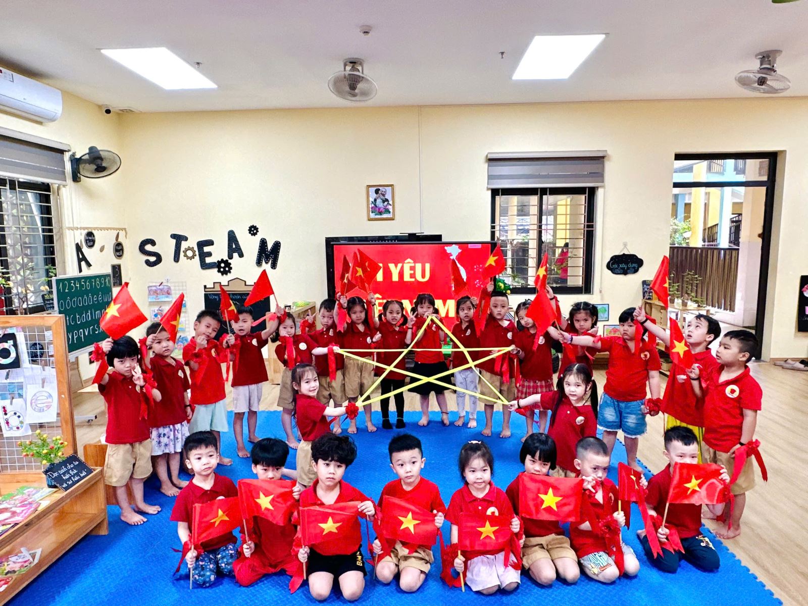 Cô và các bé cùng tạo hình ngôi sao trong lá cờ tổ quốc