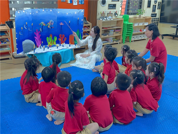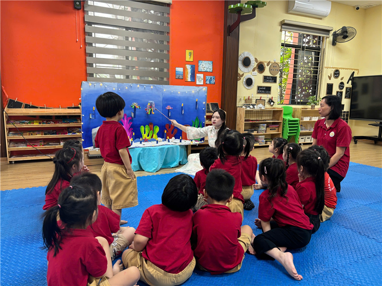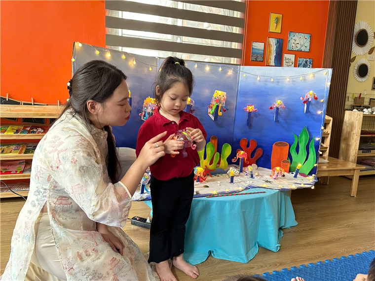 Ảnh: Cô và trẻ cùng quan sát đàm thoại