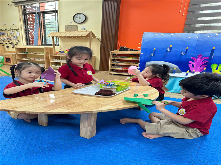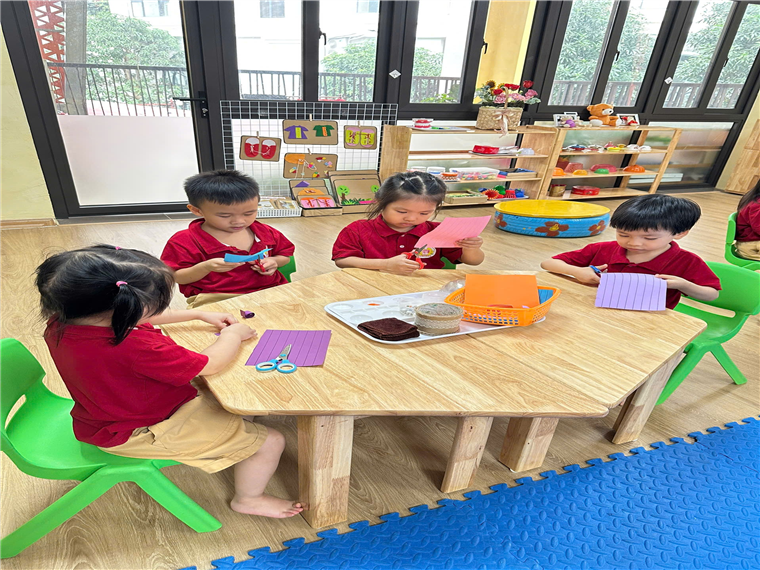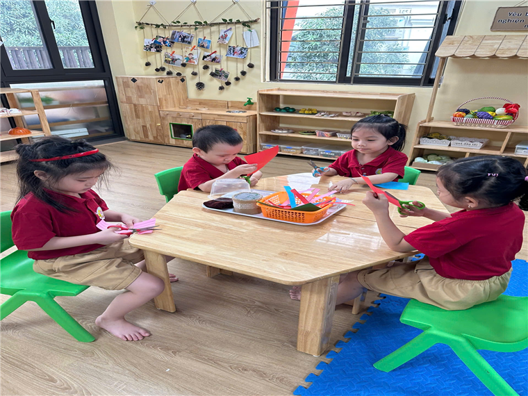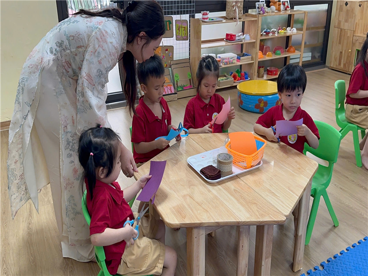 Ảnh: Bé cùng nhau cắt những dải giấy