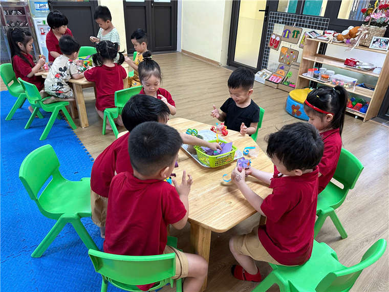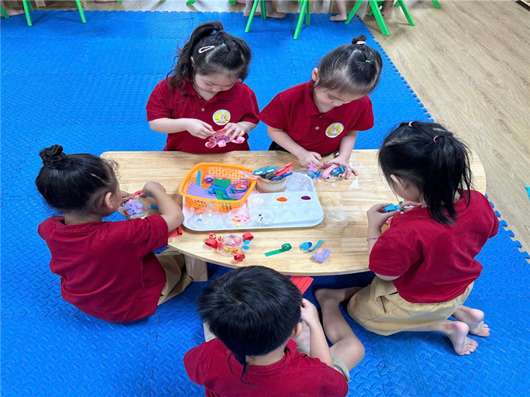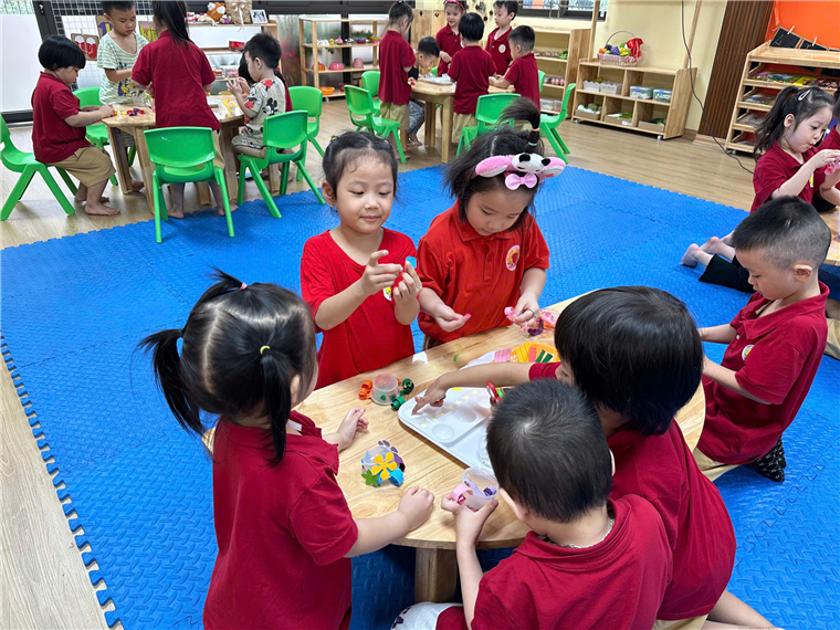 Ảnh: Bé ngắm nhìn sản phẩm của mình và bạn.