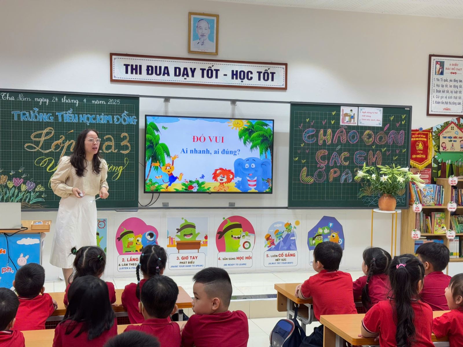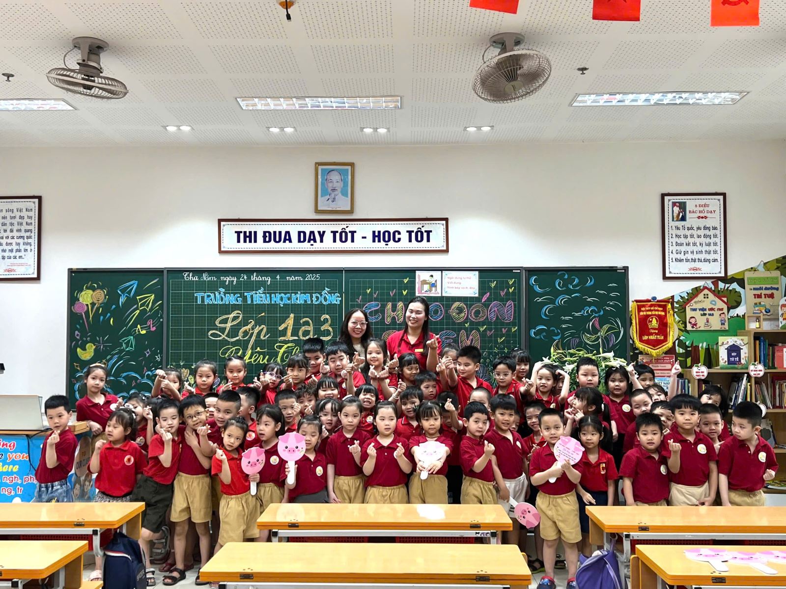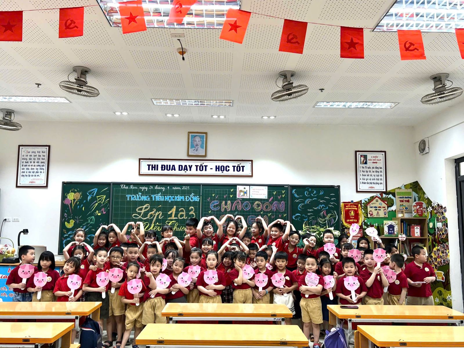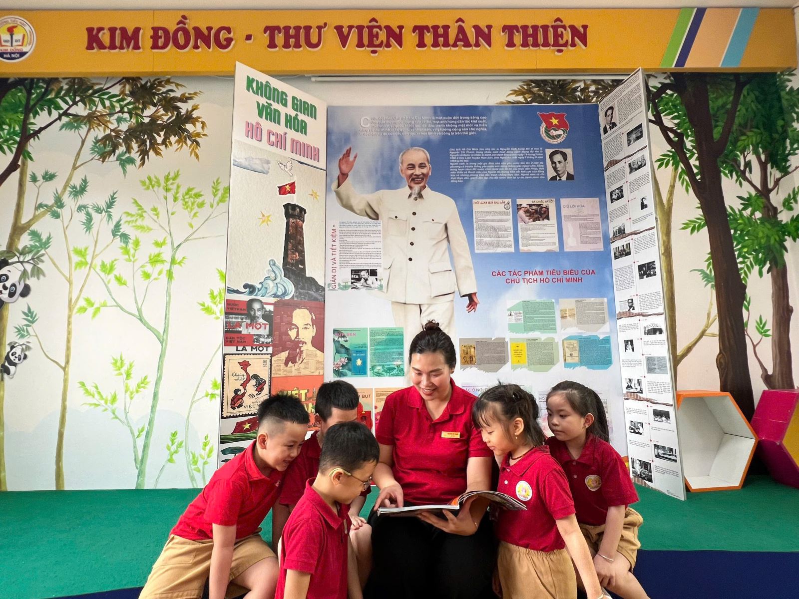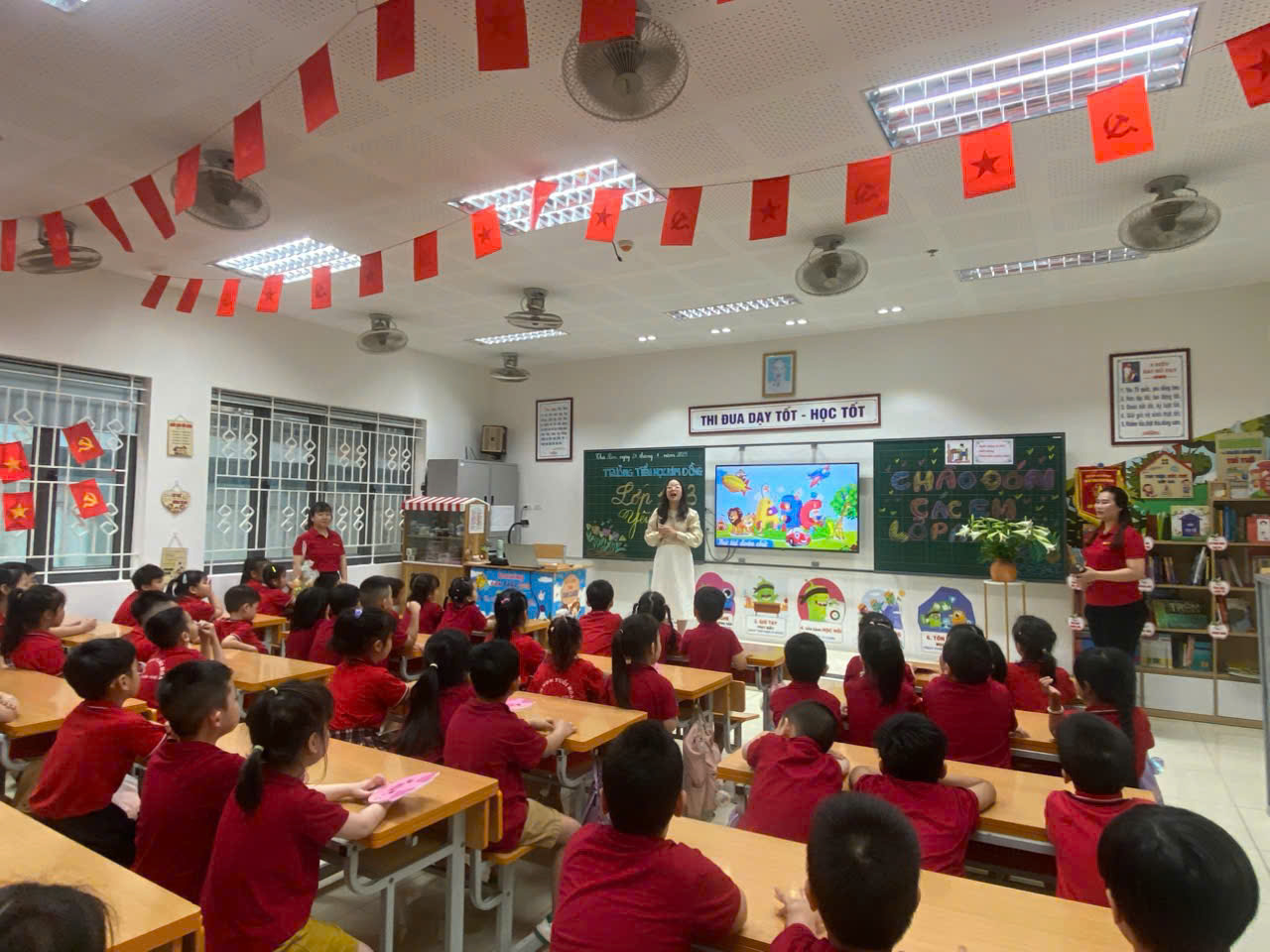 Các con trò chuyện giao lưu cùng Ban giám hiệu và cô Tổng phụ trách trường TH Kim Đồng