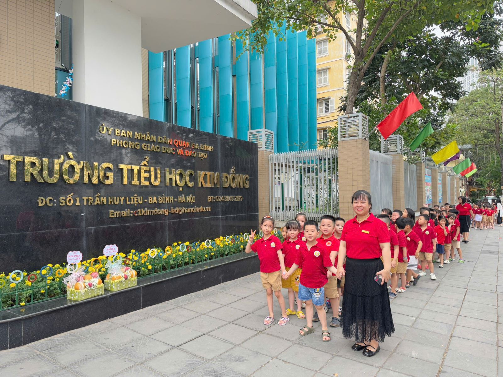 Các con xếp hàng ngay ngắn đi tham quan trường Tiểu học Kim Đồng
