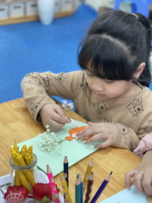 Khi tham gia buổi trải nghiệm ,với những thao tác, kỹ năng và sự khéo léo, trẻ rất hào hứng, tích cực để trang trí những tấm bưu thiếp của mình. Hoạt động không chỉ giúp trẻ thấy được ý nghĩa của ngày 8/3 mà qua đó còn bồi dưỡng cảm xúc và tình cảm xã hội cho trẻ giúp trẻ biết thể hiện sự quan tâm, yêu quý, kính trọng của trẻ với bà, với mẹ yêu quý của mình.