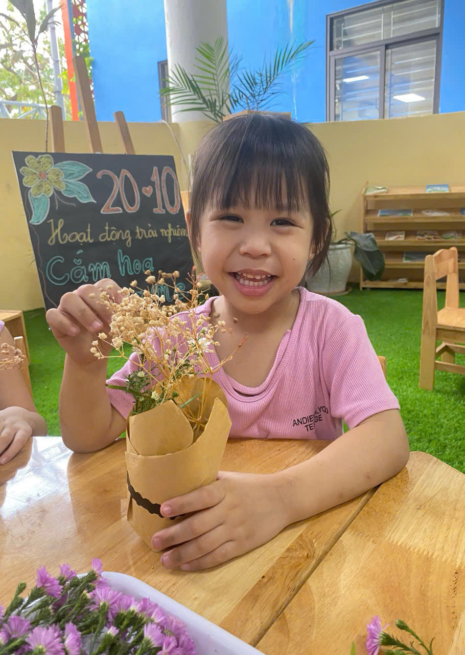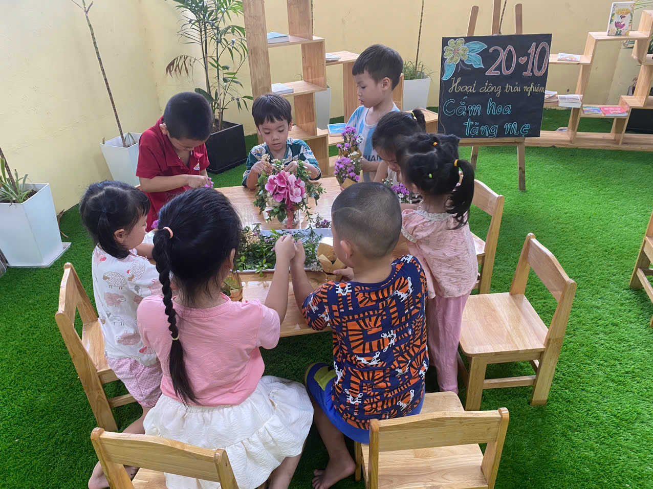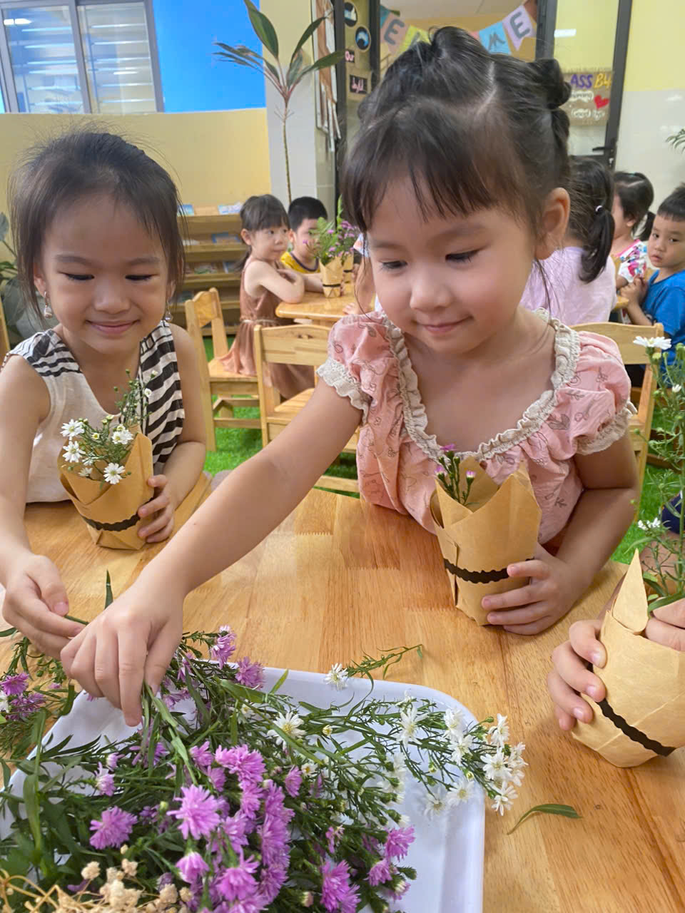 Ngày Phụ nữ Việt Nam 20/10 vừa qua, các bé lớp Mẫu giáo nhỡ B2 đã có dịp tham gia một hoạt động trải nghiệm rất đặc biệt: cắm hoa tặng bà và mẹ. Trong không gian ngập tràn sắc màu và hương thơm dịu dàng của các loài hoa, các bé được hướng dẫn cách chọn lựa và sắp xếp từng bông hoa sao cho thật hài hòa và đẹp mắt.