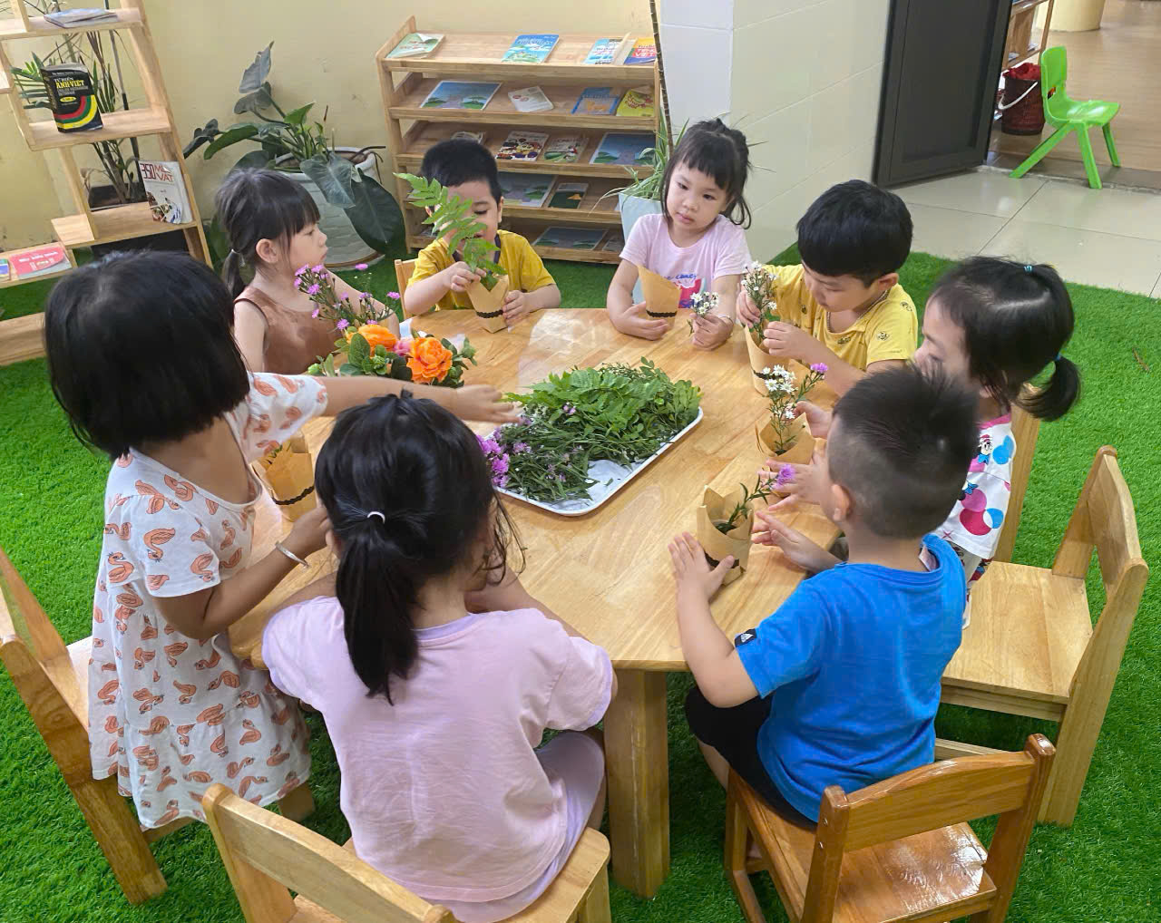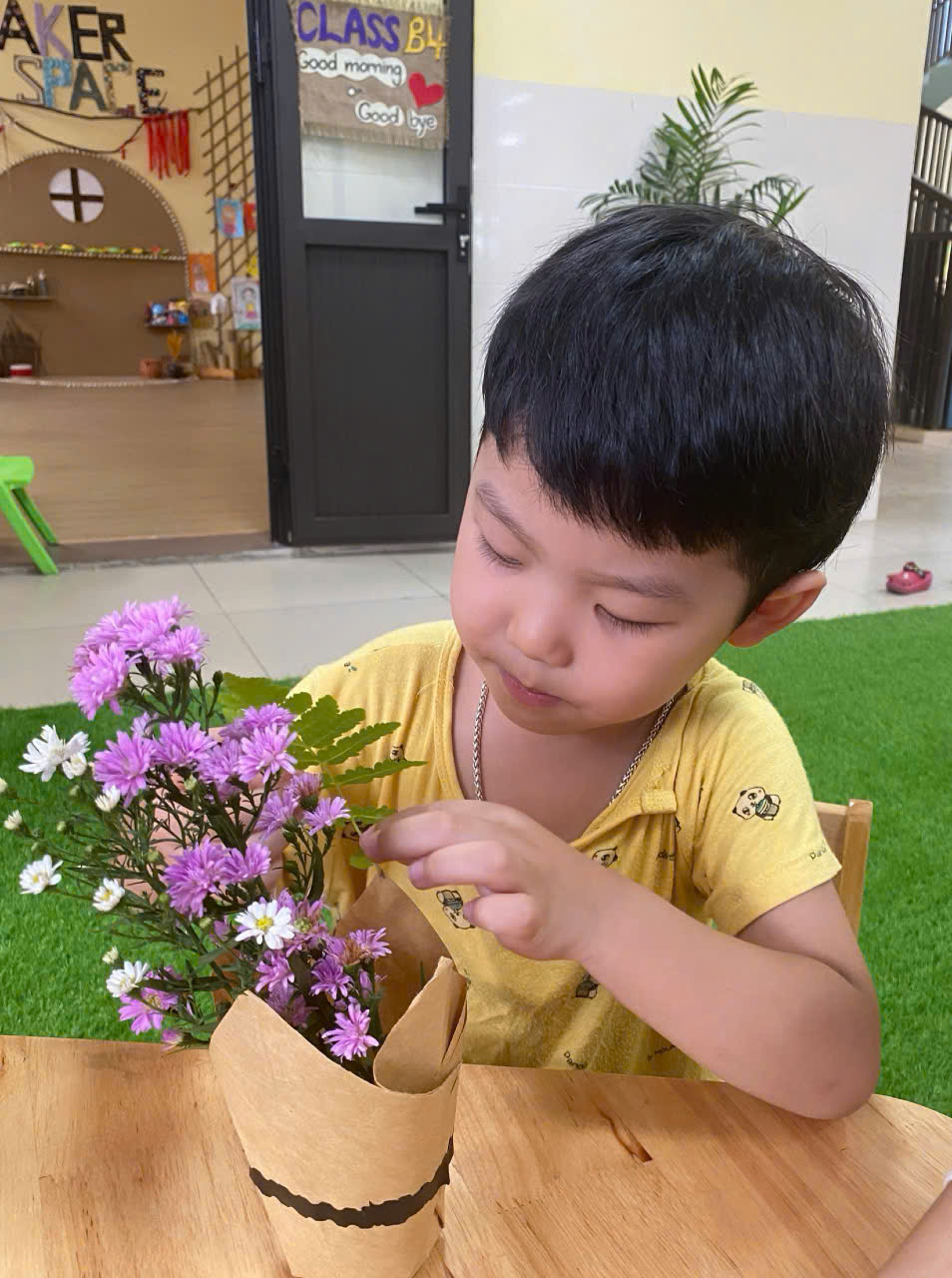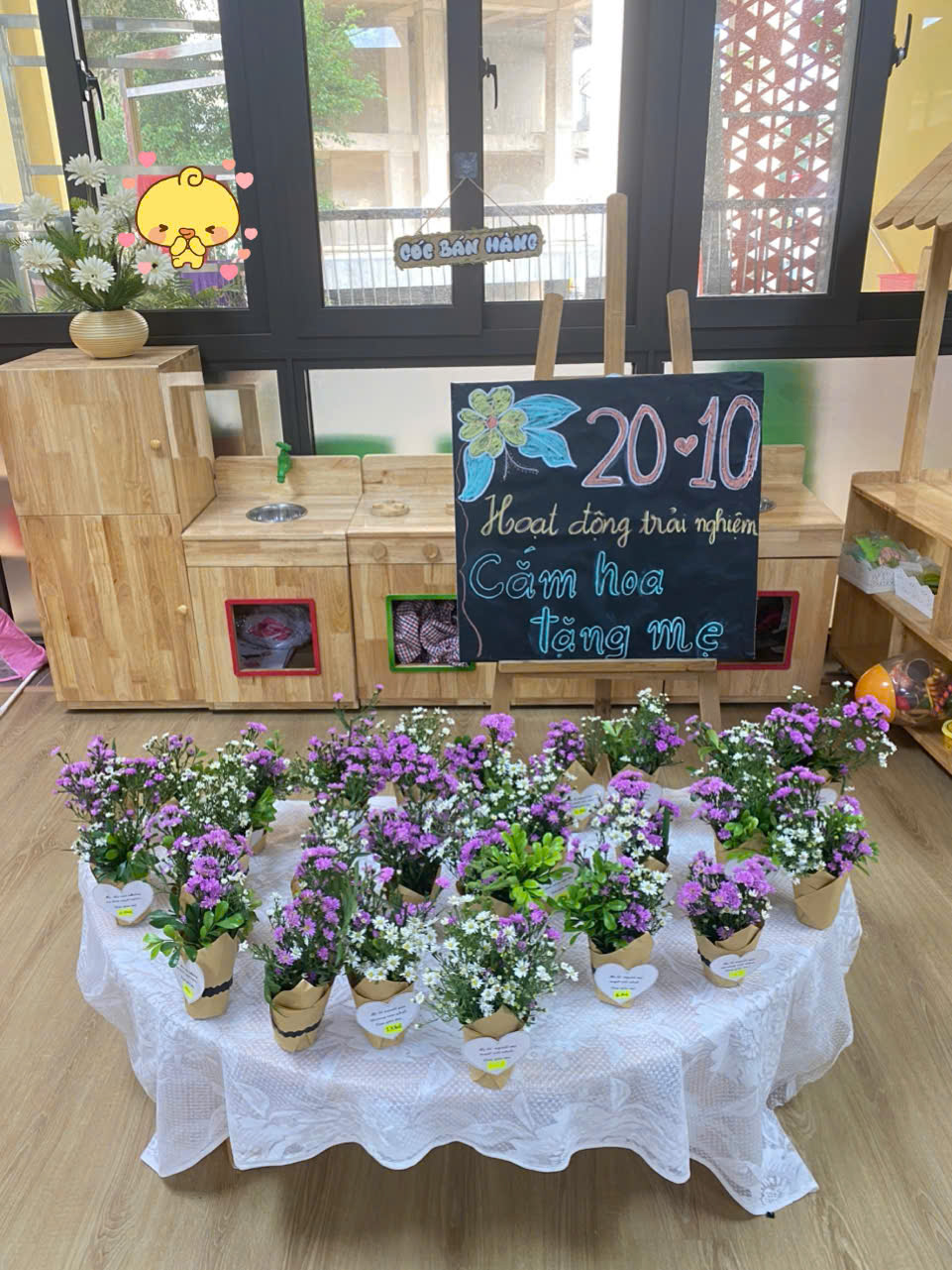 Ngày Phụ nữ Việt Nam 20/10 vừa qua, các bé lớp Mẫu giáo nhỡ B2 đã có dịp tham gia một hoạt động trải nghiệm rất đặc biệt: cắm hoa tặng bà và mẹ. Trong không gian ngập tràn sắc màu và hương thơm dịu dàng của các loài hoa, các bé được hướng dẫn cách chọn lựa và sắp xếp từng bông hoa sao cho thật hài hòa và đẹp mắt.