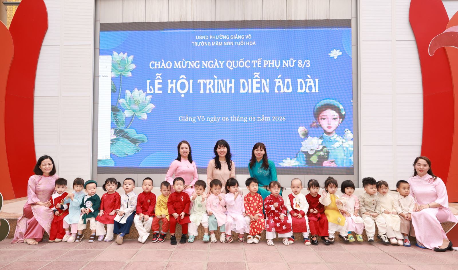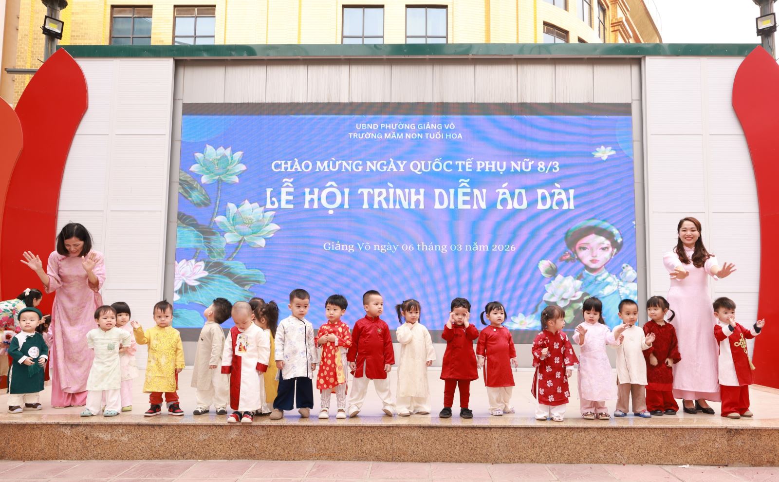 Hòa trong không khí hân hoan chào mừng ngày Quốc tế Phụ nữ 8/3, ngày 6/3 trường mầm non Tuổi Hoa đã tổ chức ngày hội trình diễn Áo dài với sự góp mặt của cô và trò toàn trường. Lễ hội đã diễn ra trong không khí vui tươi, ấm áp, tạo cơ hội để giúp trẻ được mạnh dạn tự tin thể hiện bản thân.