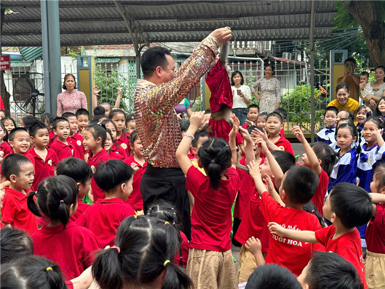 Không khí buổi lễ càng thêm rộn ràng với những tiết mục văn nghệ đáng yêu do chính các bé thể hiện, cùng các màn biểu diễn sôi động đến từ các cô giáo và các bạn trong trường. Đặc biệt, các bé còn được giao lưu cùng các cô chú nghệ sĩ đến từ Rạp Xiếc Trung ương với nhiều tiết mục hấp dẫn, bất ngờ và đầy thú vị. Một buổi lễ khép lại năm học trọn vẹn bằng tiếng cười, niềm vui và những kỷ niệm đẹp trong lòng các bé!