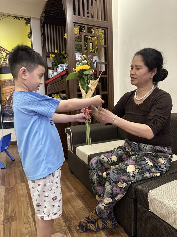 Nhân ngày Quốc tế phụ nữ 8/3! Các bạn nhỏ A4 đã dành rất nhiều tình cảm, công sức, sự tỉ mỉ để làm những tấm bưu thiếp cũng như sự lóng ngóng, vụng về khi sắp xếp những bông hoa, dùng dây ruy băng gói hoa để tạo nên bó hoa nhỏ xinh dành tặng các bà, các mẹ - những người thân yêu, gần gũi, chăm sóc các con hằng ngày. Dù chỉ là những món quà nhỏ thôi nhưng chứa đựng biết bao tình cảm của các con dành tặng bà, tặng mẹ và hơn hết là thông qua hoạt động này bồi đắp, nuôi dưỡng cho các con tình yêu thương và sự kính trọng đối với các bậc sinh thành!