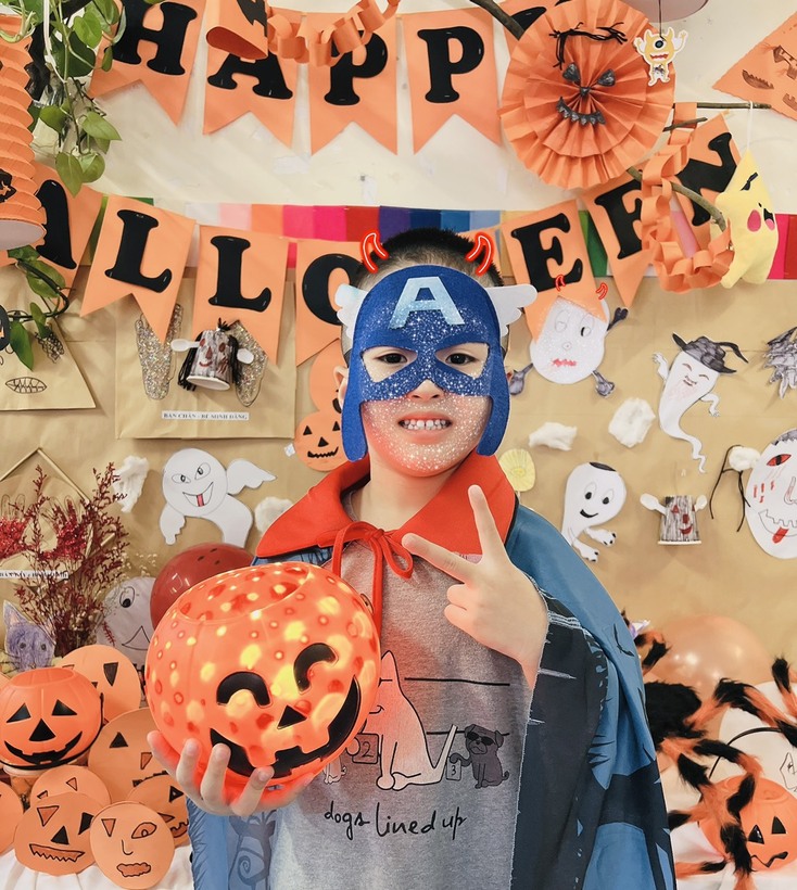 Càng gần tới vũ hội hóa trang Halloween, các bạn nhỏ lớp A4 càng háo hức, mong chờ bởi các bạn sẽ được hóa trang thành các nhân vật mà mình yêu thích. Các bạn lại còn được tự tay cắt dán, trang trí những chiếc mặt nạ để chuẩn bị cho đem hội. Không còn là những khuôn mặt đáng yêu, lém lỉnh thường ngày mà thay thế vào đó giờ đây là những thần thái lạnh lùng, kỳ bí. Thật đáng sợ phải không nào? Không những thế, vũ hội năm nay càng ấn tượng và khó quên hơn khi các bạn nhỏ còn được cô hiệu trưởng tặng cho những chiếc "kẹo ma thuật" vô cùng hấp dẫn. Còn chần chờ gì nữa, chúng mình hãy cùng nhìn lại những khoảnh khắc biến hình của các bạn ấy nhé!