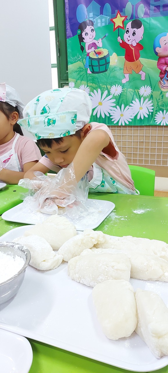 Thật là một hoạt động thú vị phải không các bạn, hãy cùng đến với những hình ảnh làm bánh của các bé mẫu giáo lớn A3 nhé