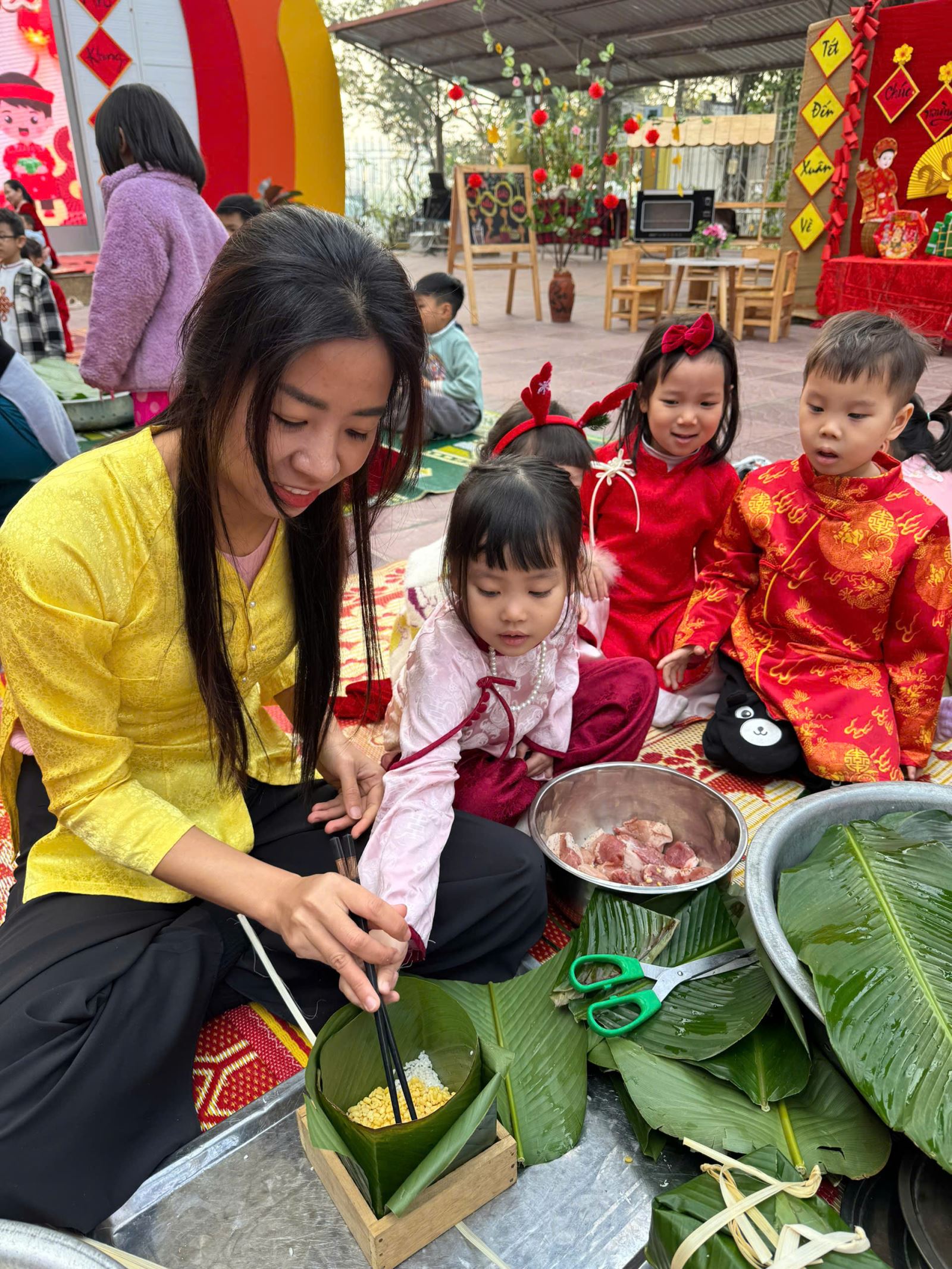 Cùng với chuỗi hoạt động chuẩn bị đón Tết Nguyên Đán Xuân Ất Tỵ, trường Mầm non Tuổi Hoa tổ chức hoạt động trải nghiệm rất đặc biệt, đó là "Lễ hội gói bánh chưng".