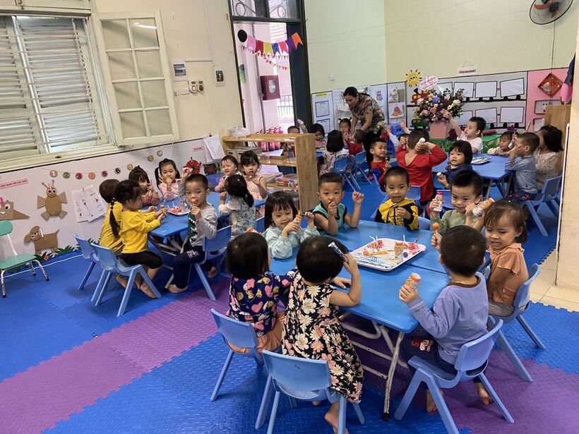 Nào hãy cùng vào lớp xem các bé lớp C2 đã làm gì để bày tỏ tình cảm của mình nhé.