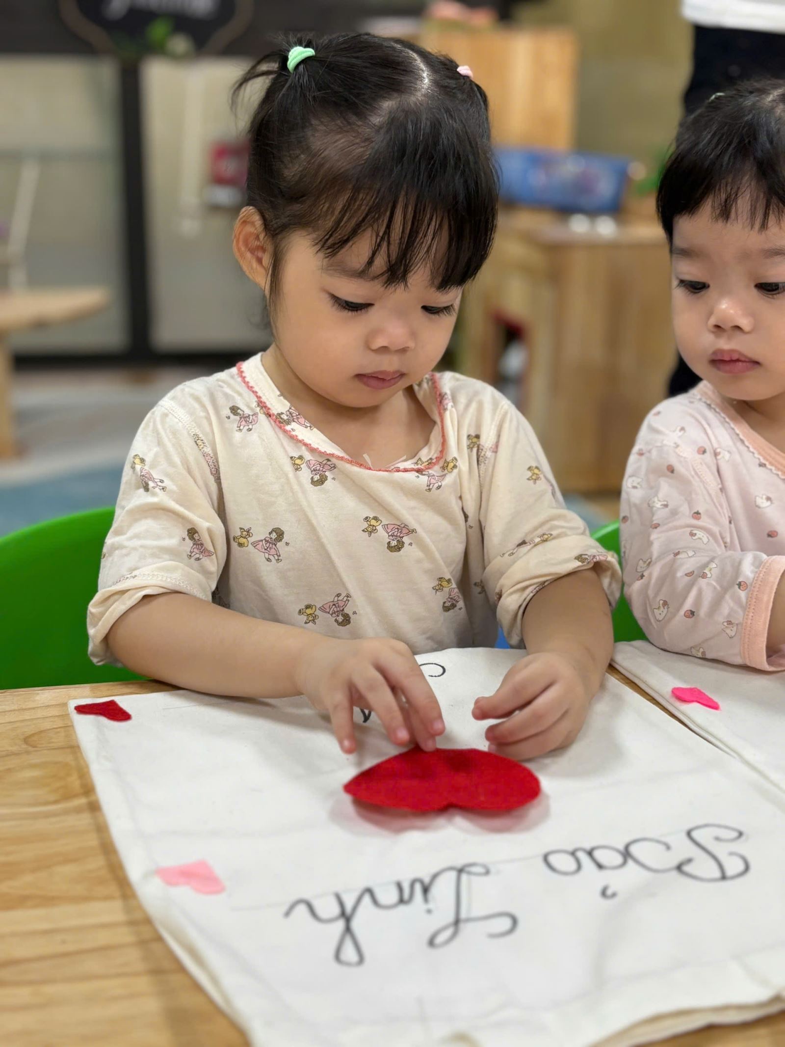 🌼 Với sự hướng dẫn tận tình của các cô giáo, các bé đã cùng nhau trang trí những chiếc túi vải nhỏ xinh bằng màu nước, giấy dán, hoa vải và những hình vẽ ngộ nghĩnh. Dù đôi bàn tay còn vụng về, nét vẽ còn nguệch ngoạc, nhưng mỗi chiếc túi đều chứa đựng biết bao tình cảm yêu thương mà các bé muốn gửi đến mẹ.