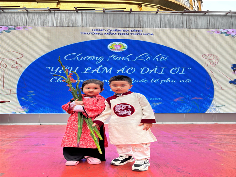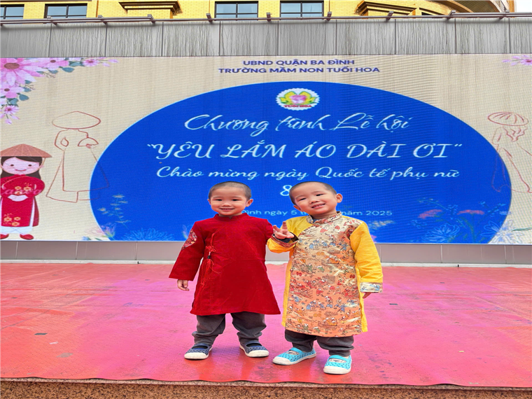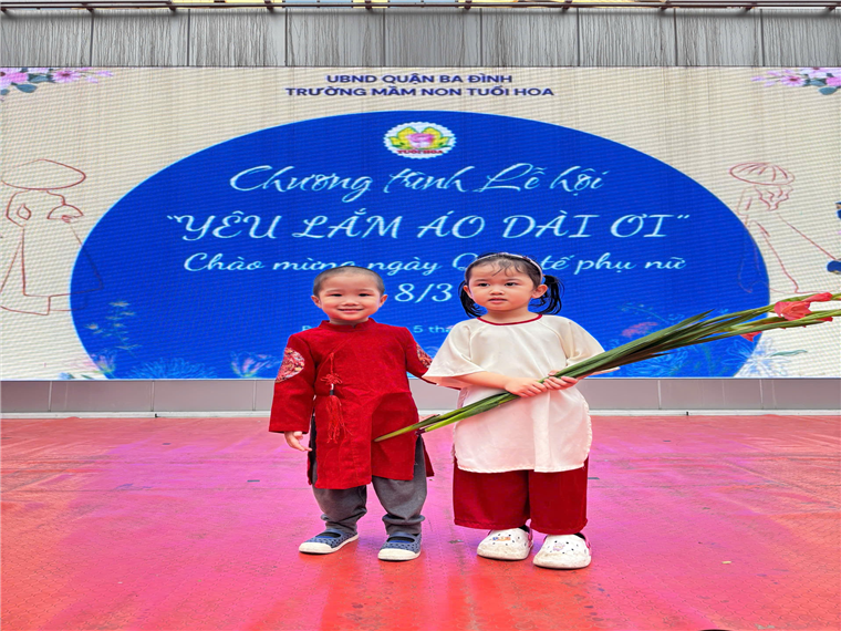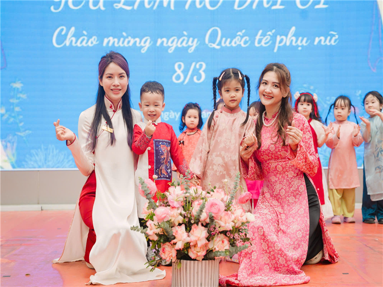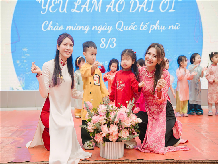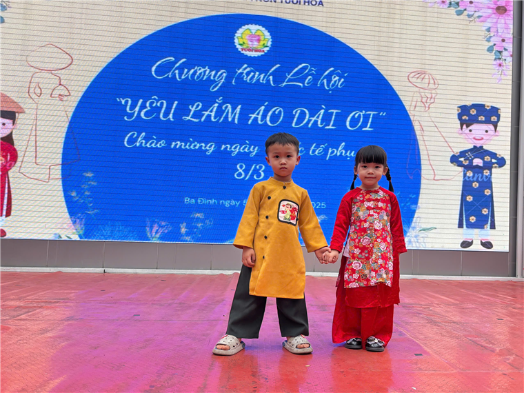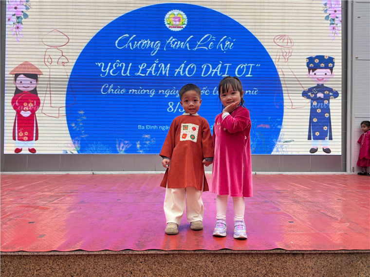 Hôm nay, các con yêu lớp mẫu giáo bé C1 đã rất hào hứng tham gia lễ hội "Yêu Lắm Áo Dài Ơi". Mở đầu chương trình là phần đồng diễn nhảy theo nhạc bài hát "Việt Nam Ơi" vô cùng sôi động của các con toàn trường. Các con mặc những bộ áo dài rực rỡ, tự tin trình diễn catwalk trên sân khấu cùng cô giáo và các bạn.