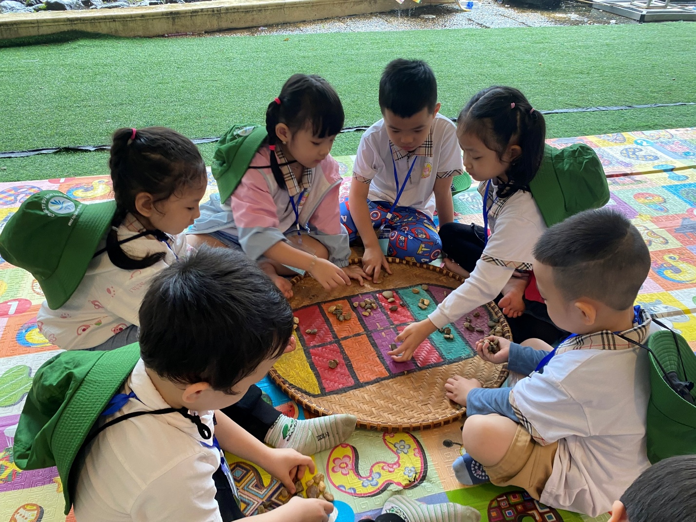 Ngoài ra, các con được tham gia vào các trò chơi team-building nhẹ nhàng, bắn cung, kéo co, chơi ô ăn quan, lắp ghép hình…. Hoạt động này thúc đẩy tinh thần đồng đội và khả năng quan sát.