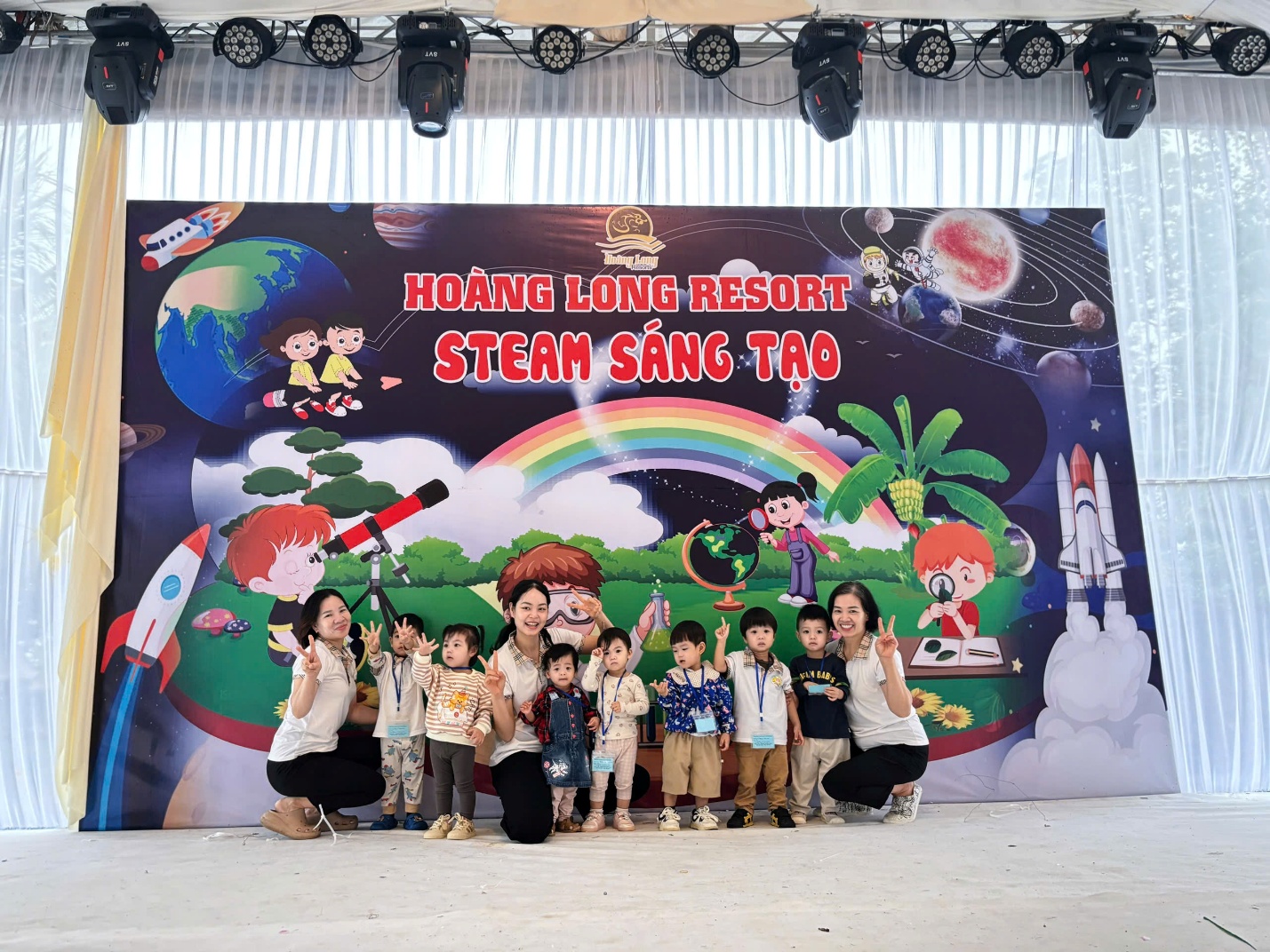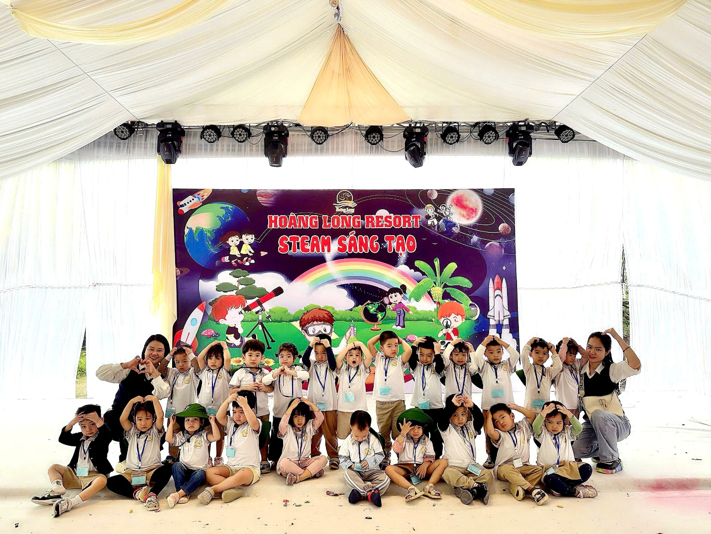 Các cô và các bé cùng nhau check in lưu giữ kỷ niệm
