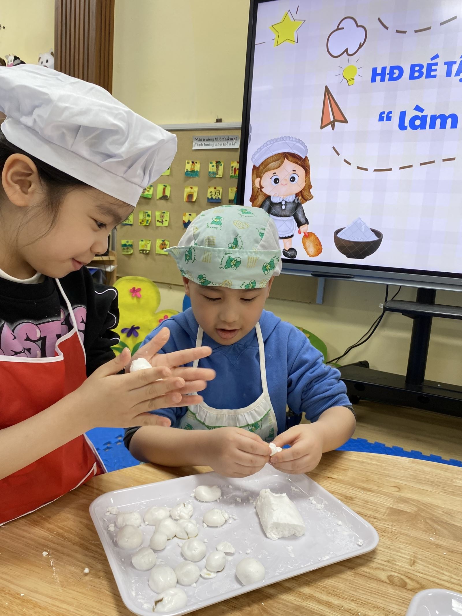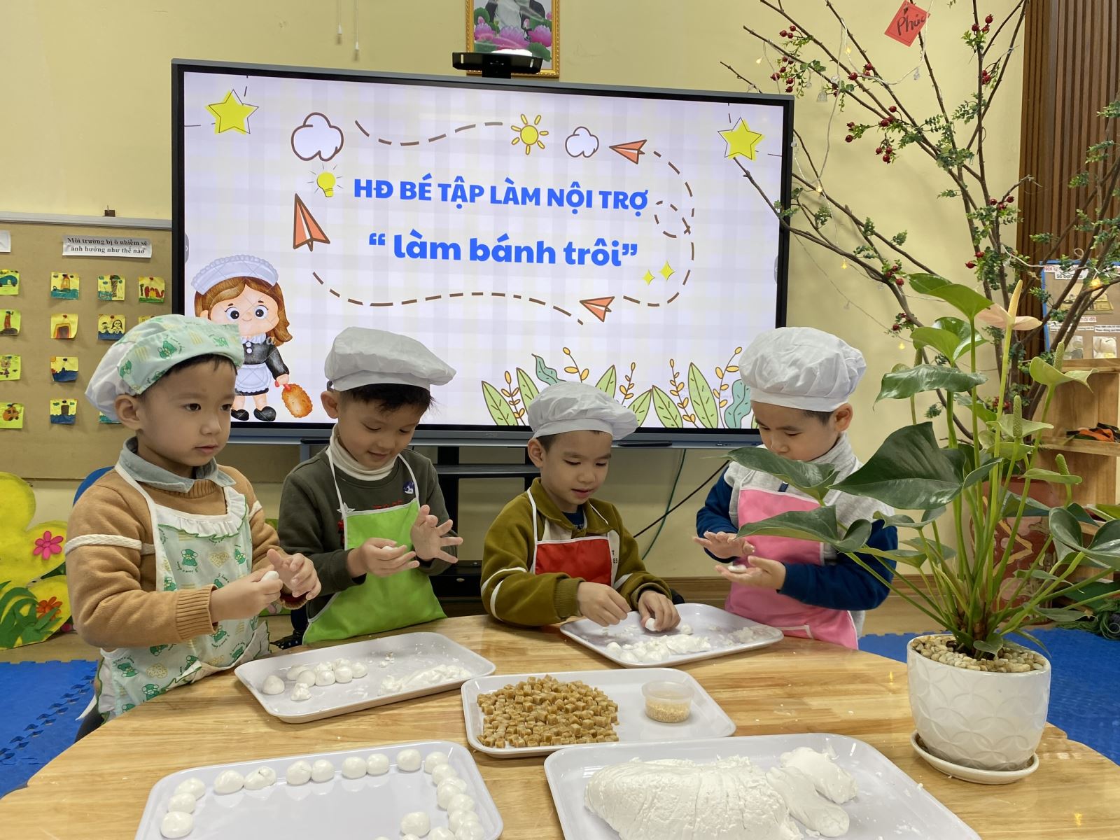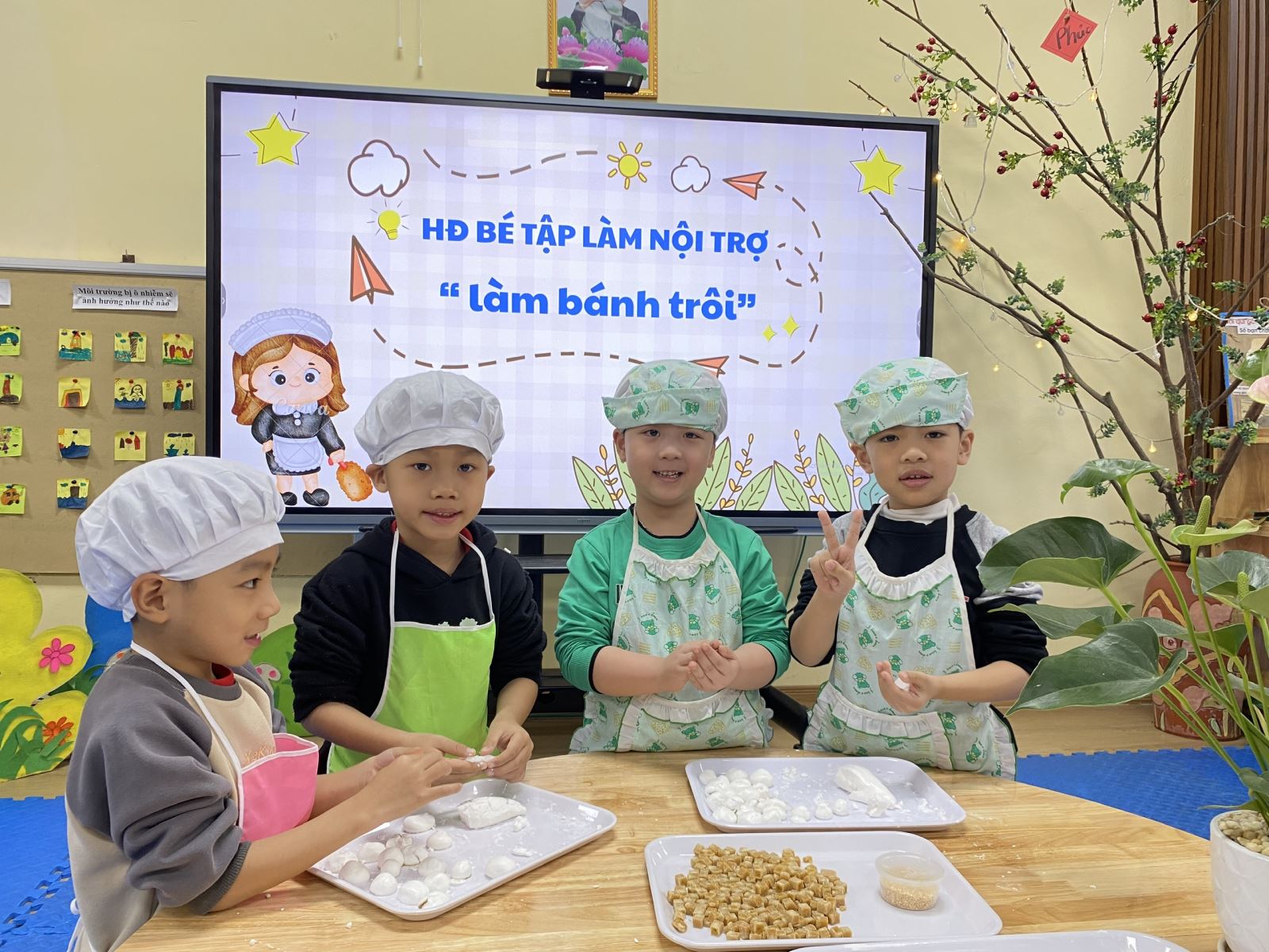 Để cho các bạn nhỏ hiểu được về ý nghĩa của những ngày Tết trong văn hóa truyền thống của Việt Nam nói chung và ý nghĩa của ngày tết Hàn Thực nói riêng cô và trò lớp A1 đã cùng tham gia vào hoạt động làm bánh trôi. Hoạt động nặn bánh trôi trong ngày tết Hàn thực đã dần trở nên thân thuộc, các con tỏ ra vô cùng khéo léo và nhanh nhẹn trong việc tạo hình cho chiếc bánh nhỏ xinh. Những chiếc bánh dù kích thước to nhỏ khác nhau, nhưng đó là cả sự cố gắng, nỗ lực của các con. Qua những hoạt động như thế này các con biết trân quý những sản phẩm mình làm ra và hơn cả các con có thể hiểu được giá trị truyền thống trong văn hóa của người Việt.