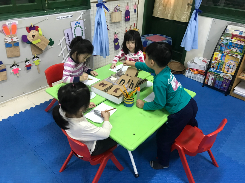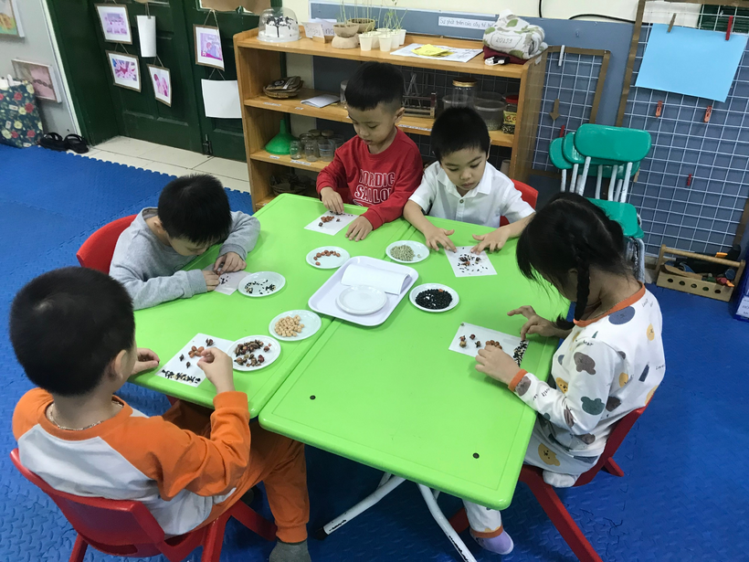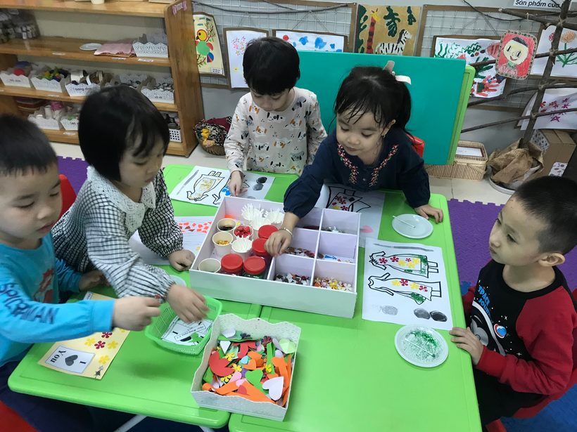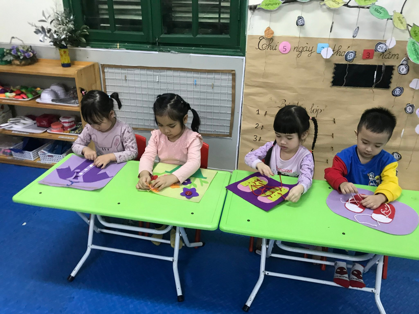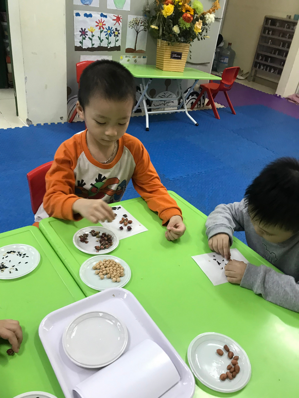Giờ vui chơi của bé lớp B1 thật vui , các bé say xưa hòa mình vào hoạt động, thể hiện sự sáng tạo trong phối hợp các nguyên học liệu để tạo ra những sản phẩm đáng yêu và ngộ nghĩnh, các bé còn được thỏa sức sáng tạo với các loại hạt để tạo nên những bức tranh hoa, không chỉ có vậy bé còn học toán và học chữ cái hay kỹ năng đơn giản xỏ dây giày, cài mở khuy áo…