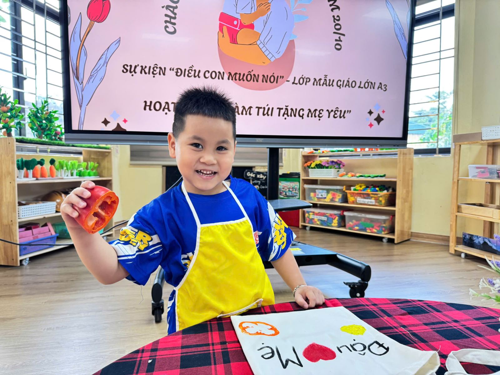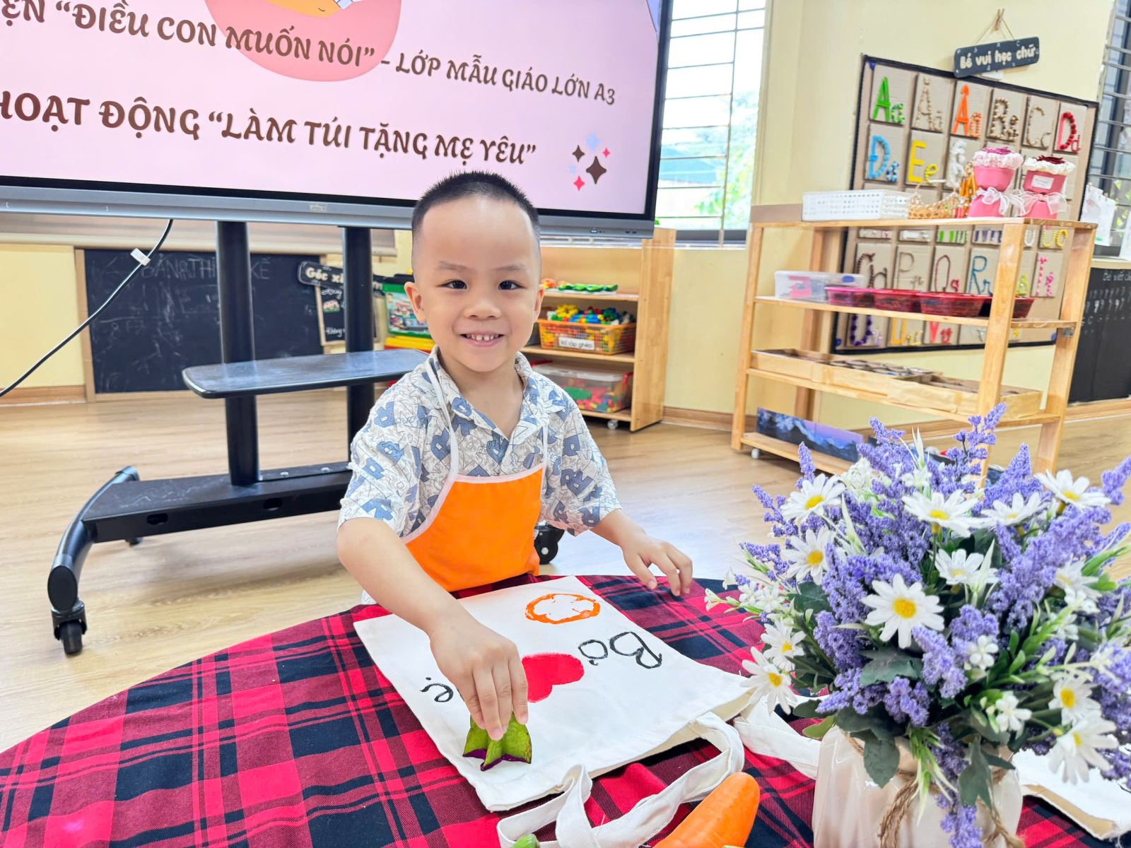 Hòa chung không khí rộn ràng chào mừng ngày Phụ nữ Việt Nam 20/10, các bạn nhỏ lớp mẫu giáo lớn A3 trường Mầm non Tuổi Hoa đã cùng nhau tham gia hoạt động trải nghiệm vô cùng ý nghĩa: Tự tay làm túi xinh tặng mẹ.