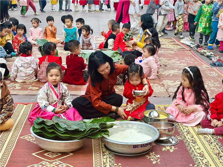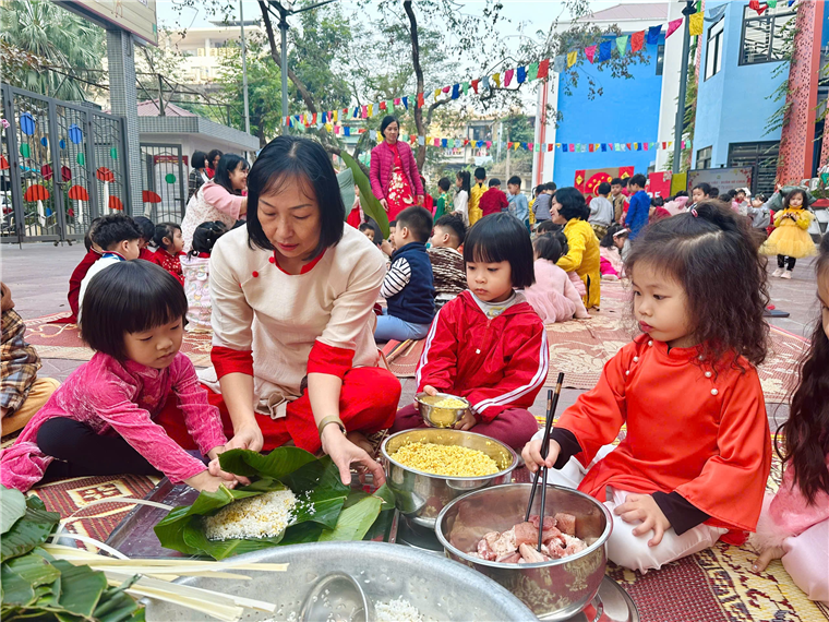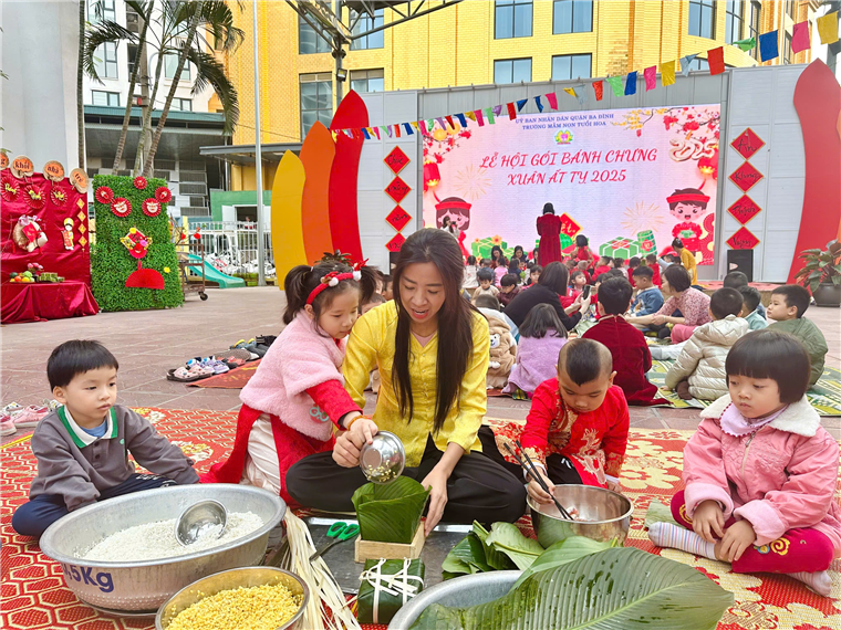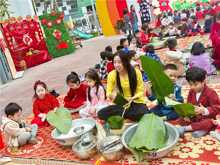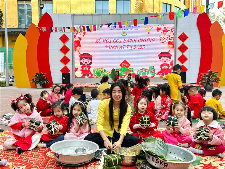 Ngày 17/01/2025, các bé lớp MG Nhỡ B1 đã tham gia “Lễ hội gói bánh chưng,” mừng xuân Ất Tỵ do trường MN Tuổi Hoa tổ chức. Trong lễ hội các bé đã được cùng các cô chuẩn bị, làm quen, tìm hiểu về các nguyên vật liệu để gói bánh chưng. Với sự nhiệt tình tham gia của các cô giáo, trẻ cùng nhau gói nên những chiếc bánh thật đẹp. Thú vị hơn là trẻ rất hào hứng được trực tiếp tham gia gói bánh chưng,