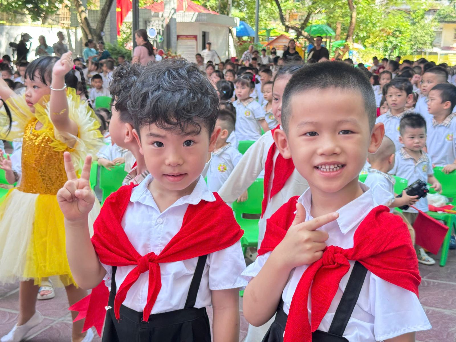 Màn biểu diễn sôi động của các bạn khối mẫu giáo lớn khiến cả sân trường cùng đứng lên hưởng ứng theo