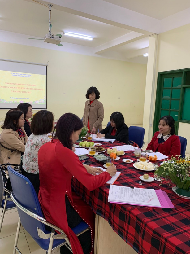 Thực hiện Hướng dẫn số 08/HD-PGDĐT ngày 05/9/2022 của Phòng GDĐT quận Ba Đình về thực hiện nhiệm vụ năm học 2022-2023; Sáng ngày 02/03/2023, tại trường Mầm non Tuổi Hoa, vinh dự đón đoàn kiểm tra của Phòng giáo dục và đào tạo Quận Ba Đình về việc thực hiện chuyên đề giáo dục và nhiệm vụ năm học của nhà trường.