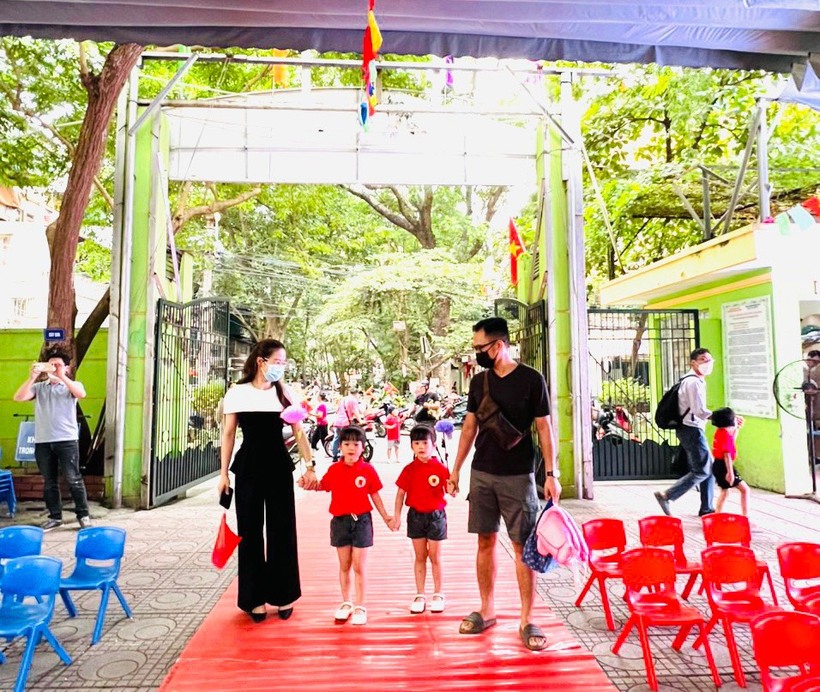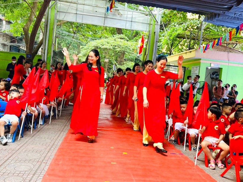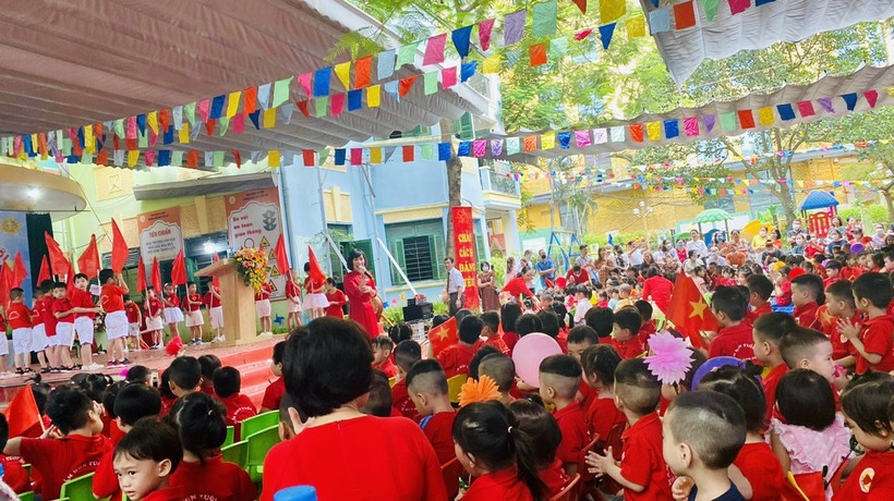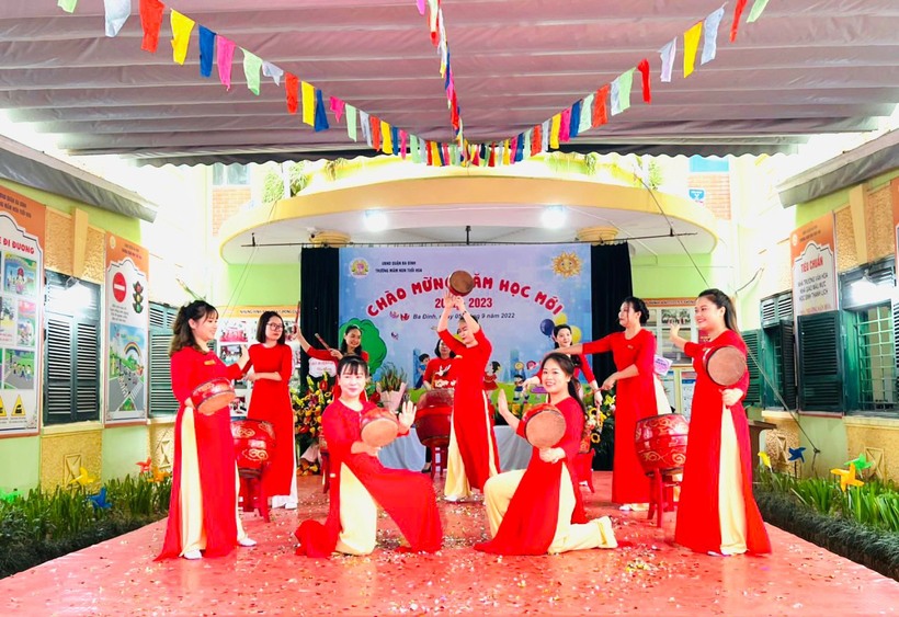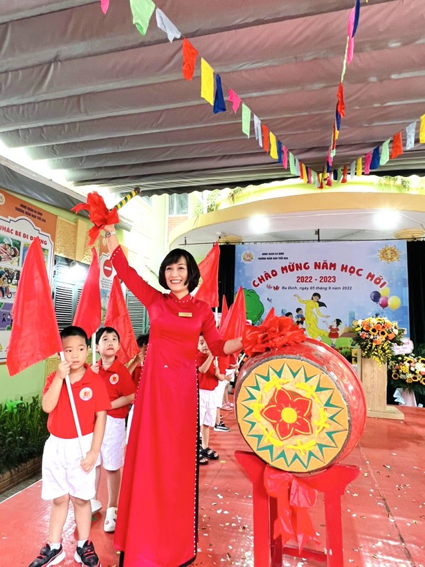 Tại buổi Lễ Khai giảng năm học 2022 - 2023 cô giáo Lê Thị Trâm Anh – Bí thư Chi bộ - Hiệu trưởng nhà trường đã trò chuyện, căn dặn các con học sinh và đánh trống khai trường bước vào năm học mới.