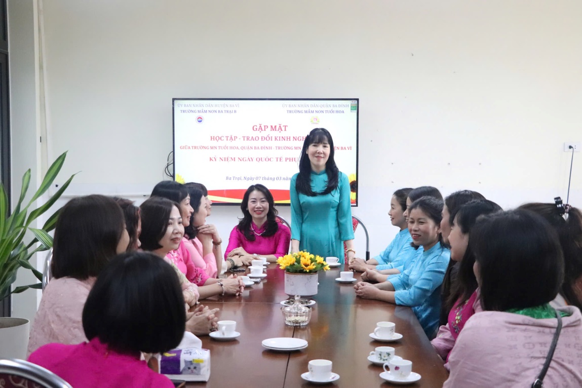 Ngày 07/03 tập thể cán bộ, giáo viên trường mầm non Tuổi Hoa do nhà giáo Phạm Thanh Hoa - Hiệu trưởng nhà trường làm trưởng đoàn học tập,chia sẻ chuyên môn tại trường mầm non Ba Trại (Ba Vì) nhân kỷ niệm 115 năm ngày quốc tế phụ nữ (8/3/1910 – 8/3/2025). Tham dự buổi giao lưu có các đồng chí lãnh đạo xã Ba Trại, các cán bộ quản lý và giáo viên nhân viên của hai nhà trường.