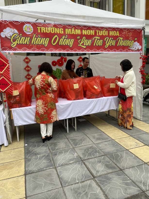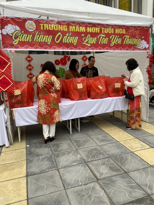 Chương trình "Tết ấm Giảng Võ - Lan toả yêu thương” là hoạt động nhân văn và ý nghĩa với các "gian hàng 0 đồng" đây là hoạt động thiết thực do cấp ủy, chính quyền phường tổ chức, qua đó tuyên truyền sâu rộng ý nghĩa tinh thần “Tương thân tương ái, lá lành đùm lá rách” của dân tộc. 20 xuất Quà Tết của trường mầm non Tuổi Hoa tại "Gian hàng 0 đồng” đều là những mặt hàng thiết yếu như gạo, dầu ăn, nước mắm, bột nêm... trị giá 250.000đ.