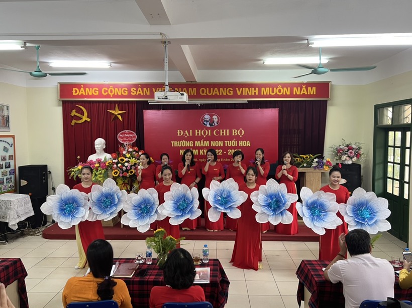 Căn cứ Điều lệ Đảng cộng sản Việt Nam, thực hiện Hướng dẫn số 04-HD/QU ngày 29/4/2022 của Quận ủy Ba Đình về tổ chức Đại hội chi bộ nhiệm kỳ 2022-2025; Thực hiện Kế hoạch số 55 – KH/ĐU ngày 25/052022 của Đảng Ủy về tổ chức Đại hội chi bộ nhiệm kỳ 2022-2025;Được sự nhất trí của Đảng ủy phường Giảng Võ, Theo thông báo số 61- TB/ĐU ngày 29/07/ 2022. Ngày 04/08/2022, Chi bộ Trường mầm non Tuổi Hoa đã long trọng tổ chức Đại hội Chi bộ nhiệm kỳ 2022-2025.