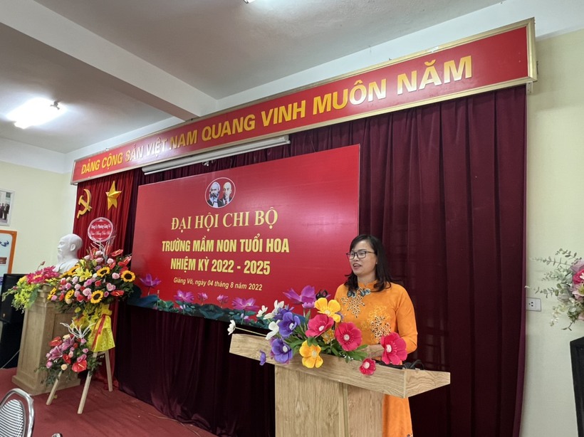 Trong Đại Hội Đồng chí Phạm Thị Hòa- Phó Bí thư thường trực đảng ủy Phường Giảng Võ đã phát biểu ý kiến chỉ đạo tới Đại hội đã ghi nhận những kết quả mà Chi bộ nhà trường đã đạt được trong nhiệm kỳ 2020 - 2022 ; Chi bộ nhà trường thường xuyên quan tâm đến công tác phát triển đảng viên mới, góp phần nâng cao năng lực lãnh đạo và sức chiến đấu của tổ chức đảng.