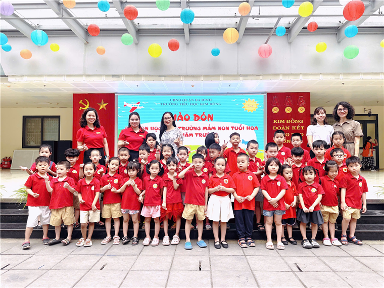 Sáng ngày 24/4 trường mầm non Tuổi Hoa tổ chức cho các bé khối mẫu giáo lớn 5- 6 tuổi tham quan trường tiểu học Kim Đồng. Ngay từ cổng trường, các con đã nhận được sự chào đón nồng nhiệt từ Ban giám hiệu, các thầy cô giáo và đặc biệt là toàn thể các anh chị học sinh khối 1. Các con được giao lưu trò chuyện cùng cô tổng phụ trách, được nghe cô giới thiệu về trường, được các cô dẫn đi thăm quan các phòng chức năng của nhà trường như: phòng âm nhạc, phòng mỹ thuật, phòng thư viện, phòng sáng tạo Steam...